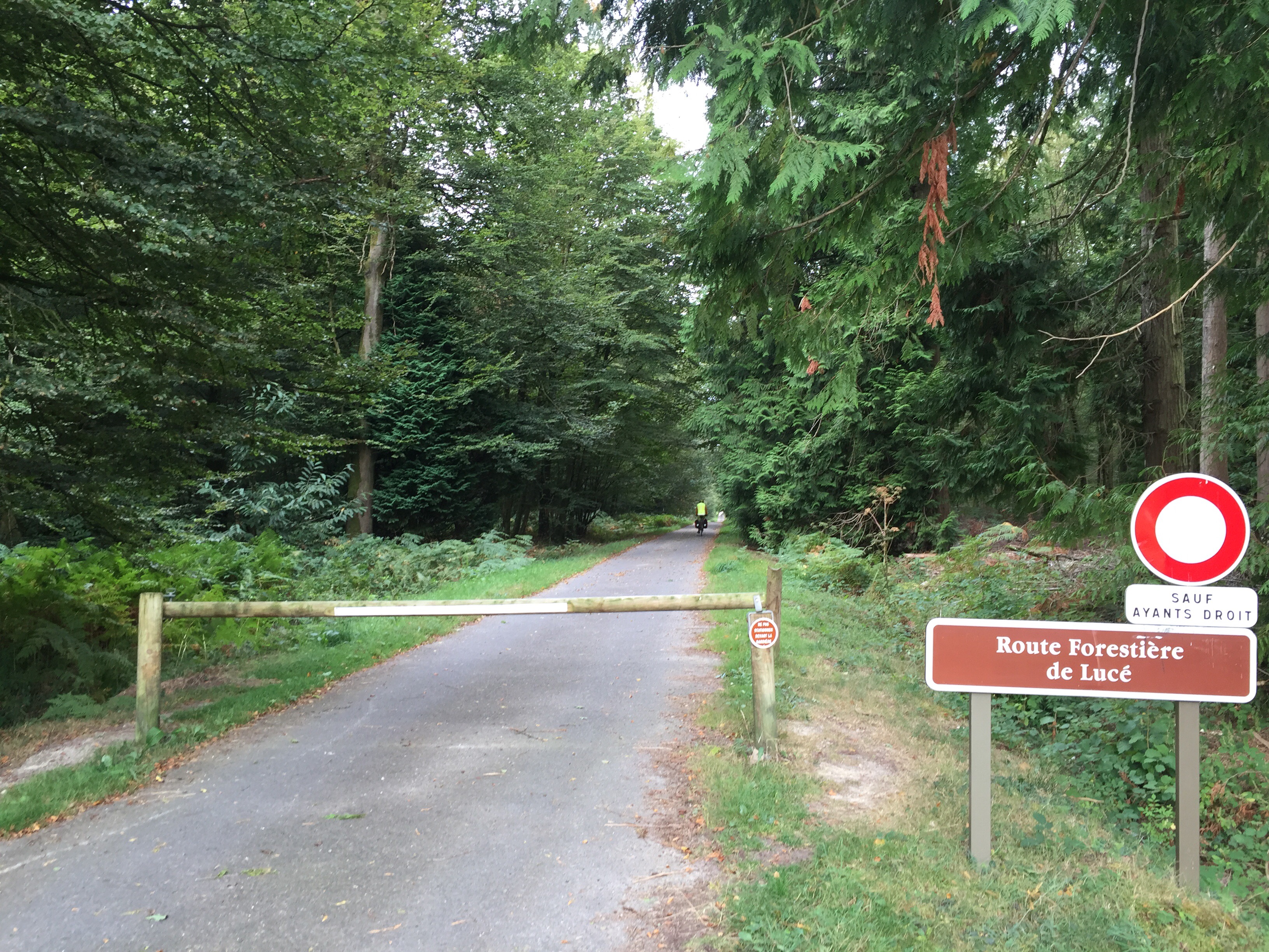 Depart par la forêt domaniale des Andaines. Très agréable et pour couronner le tout, la température a baissé, ce matin il fait 19 degrés. Idéal pour moi.