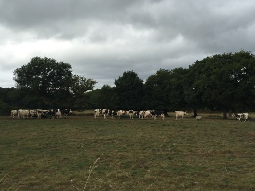 Beaucoup de vaches dans les prés. La Normandie est là.