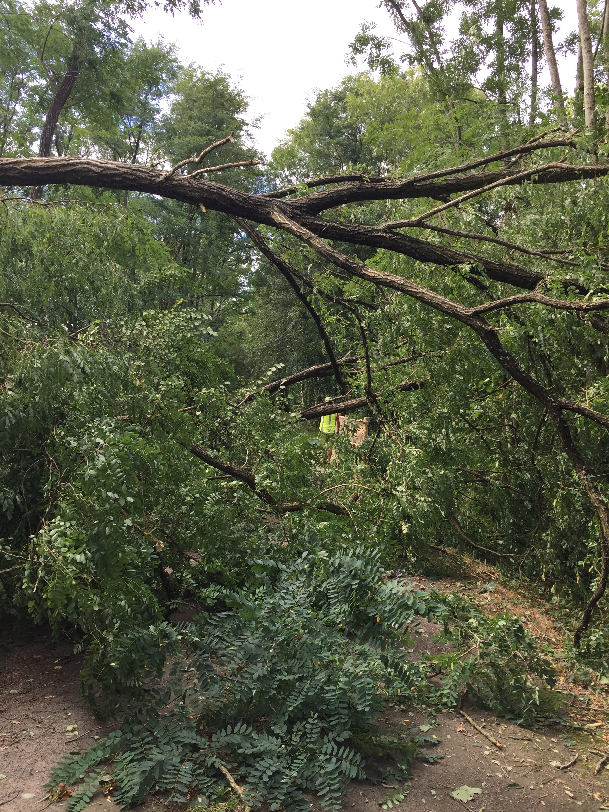 Il y a de temps en temps des branches qui jonchent le sol. Il a dû y avoir un coup de vent récemment.