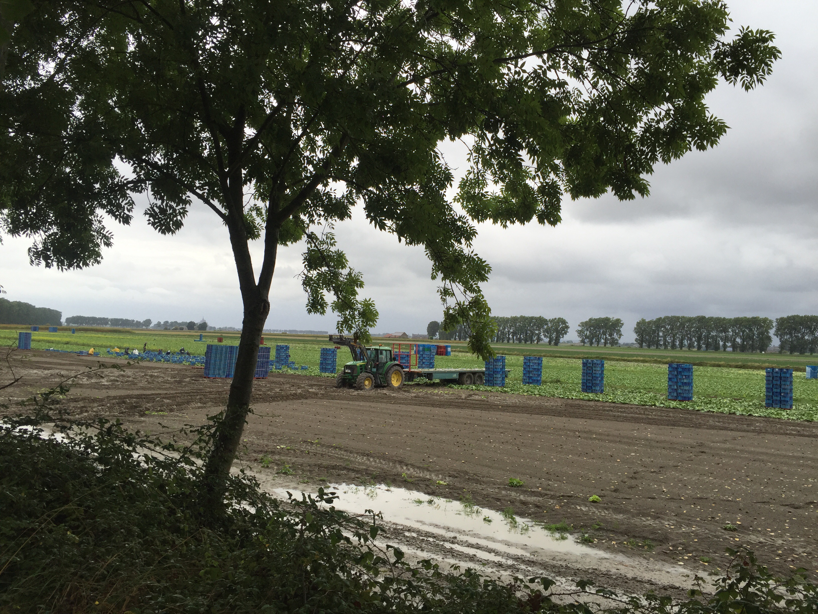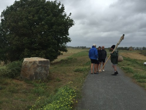 Chouette, il n’y a plus d’arbres !!! Nous roulons sur une digue et là le copain de la pluie arrive. C’est qui son copain ??? Et bien, c’est le vent !!! Une horreur !!! Il souffle en rafales, face à nous évidemment. Où sont les arbres qui nous protégeaient ???