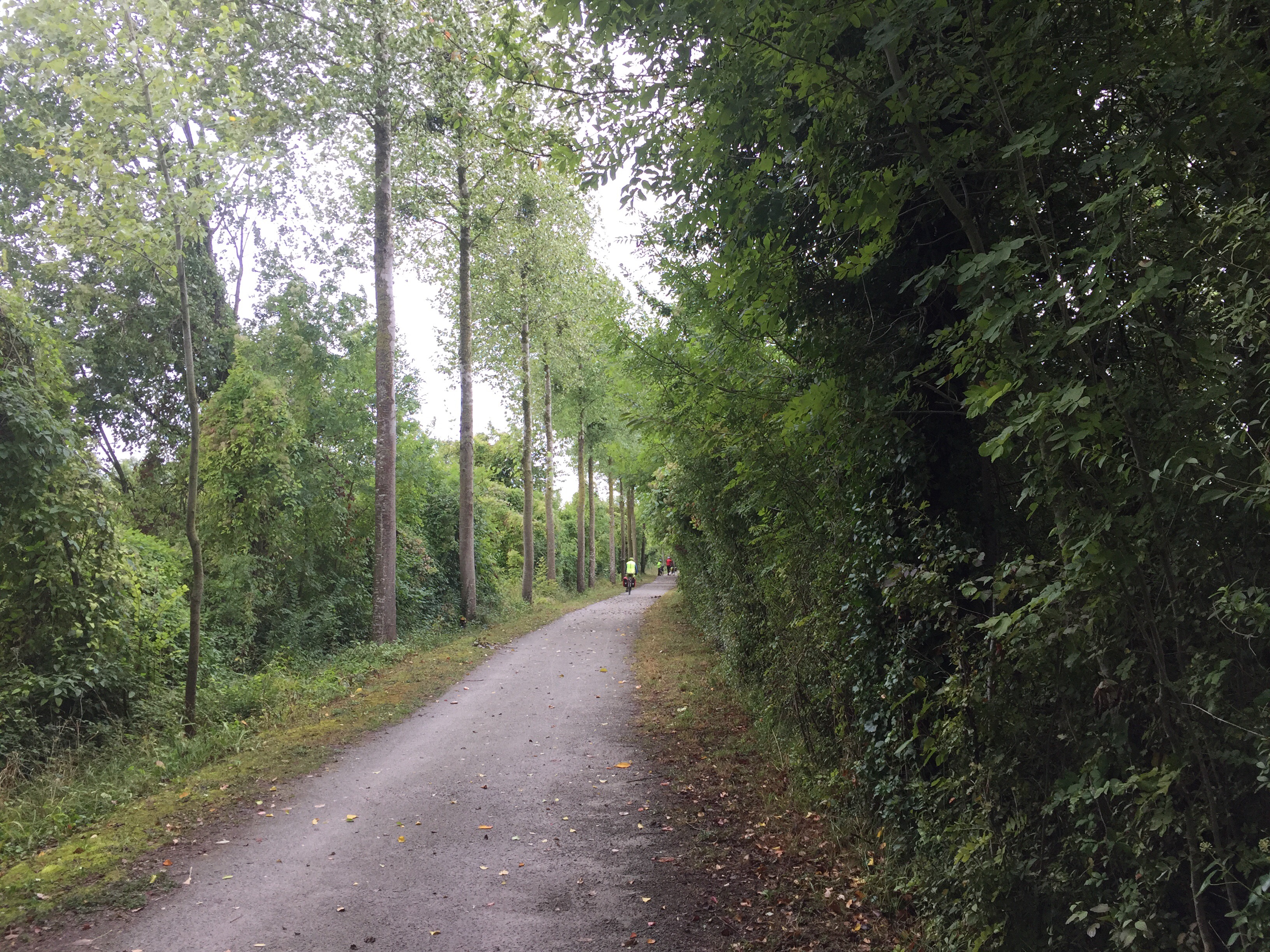 Changement de cap, nous nous trouvons maintenant sur une voie verte bordée de peupliers.