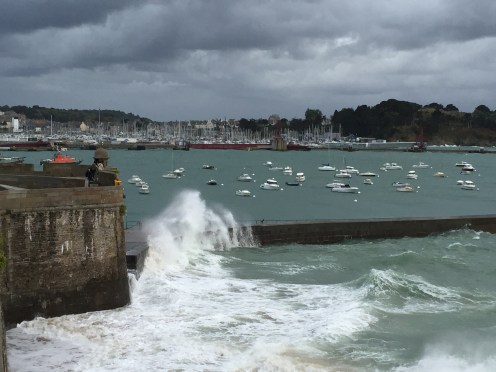 On nous avait conseillé de passer par la digue pour rentrer dans St-Malo. Nous n’avons même pas pu nous en approcher tellement le vent était violent.