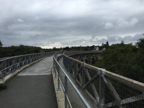 Viaduc des Ponts-Neufs. Le train n’y circule plus depuis 1948. Il a été réhabilité en 2014 pour permettre aux randonneurs de franchir la vallée du Gouessant.