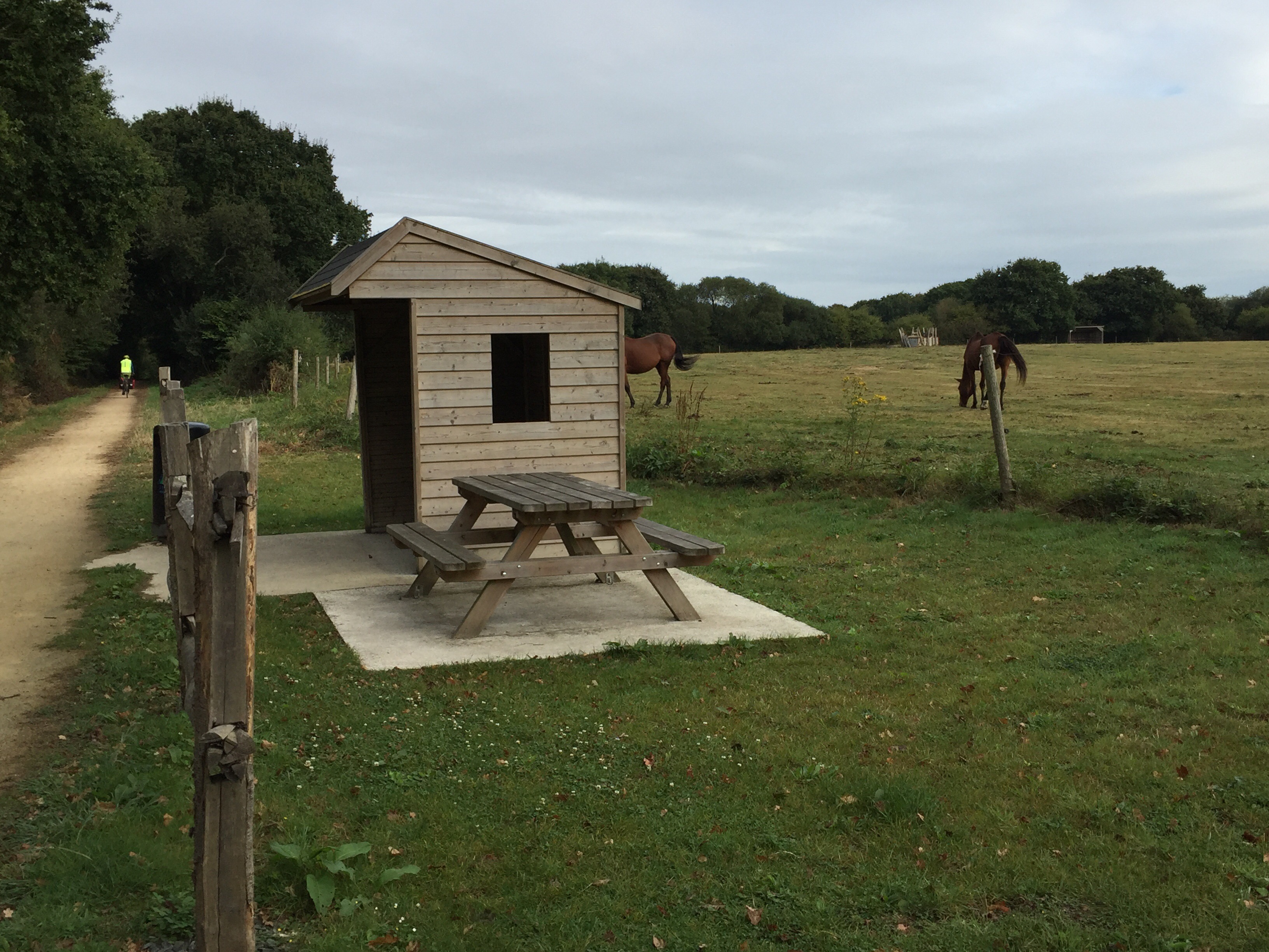 Une jolie petite aire de pique-nique au bord de la voie verte. Pas d’arrêt, nous démarrons la journée.