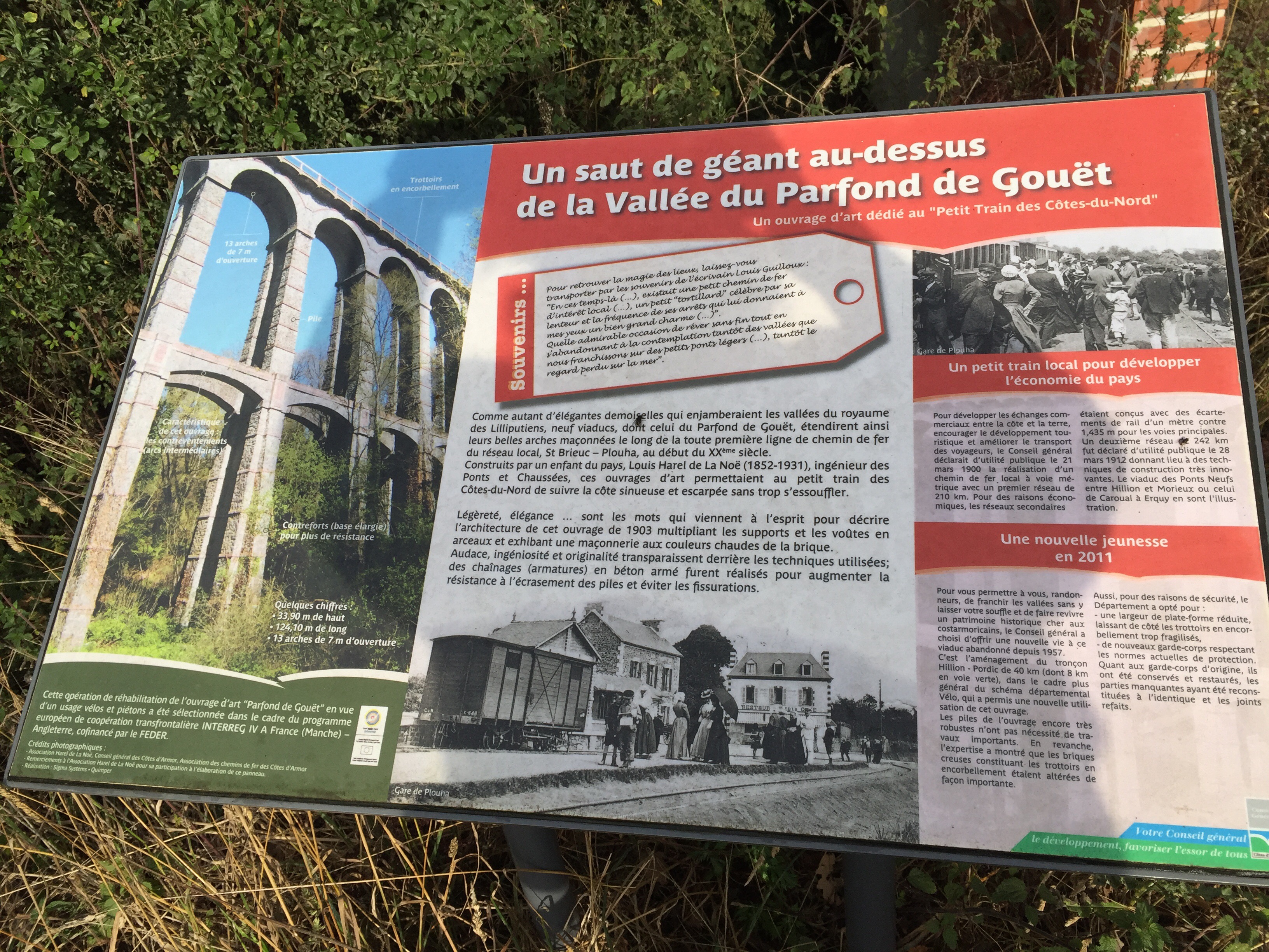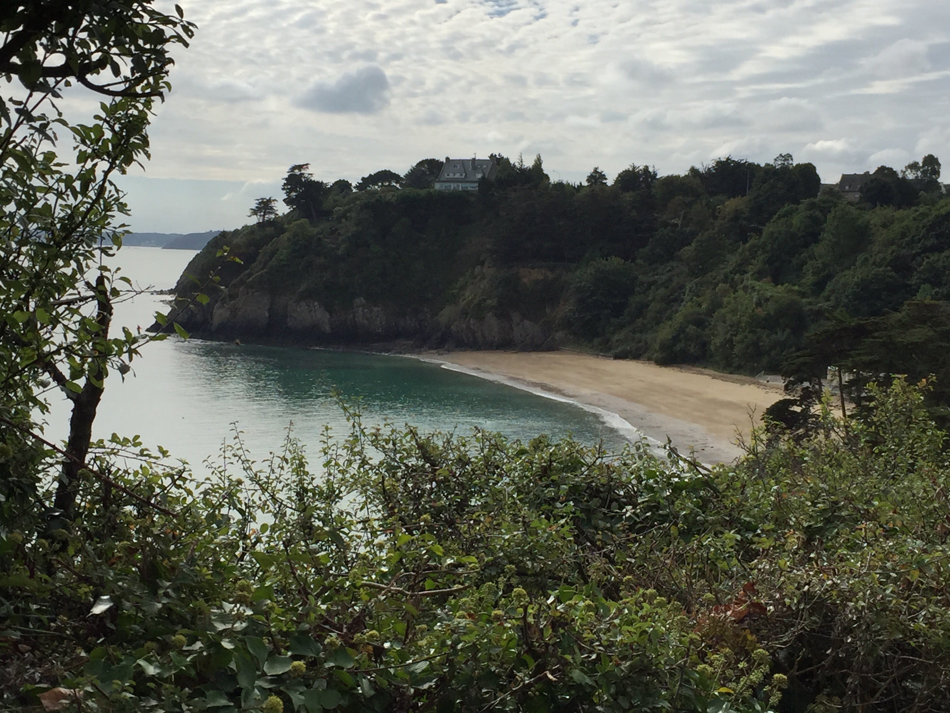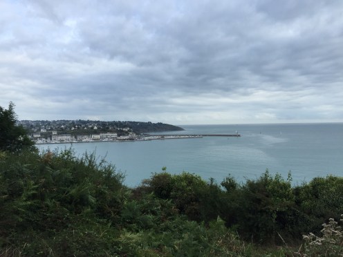 Binic au loin. Je ne pense pas que les panneaux que nous suivons nous font prendre le chemin le plus court. Nous passons notre temps à tourner à droite à gauche… Nous voici sur le chemin des murailles ou un nom approchant, il surplombe la falaise, la descente est tellement raide que je descends les freins serrés à fond !!!
