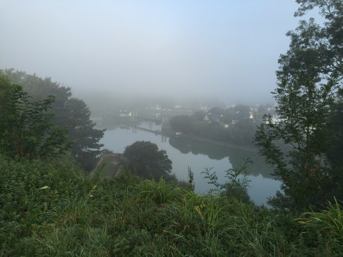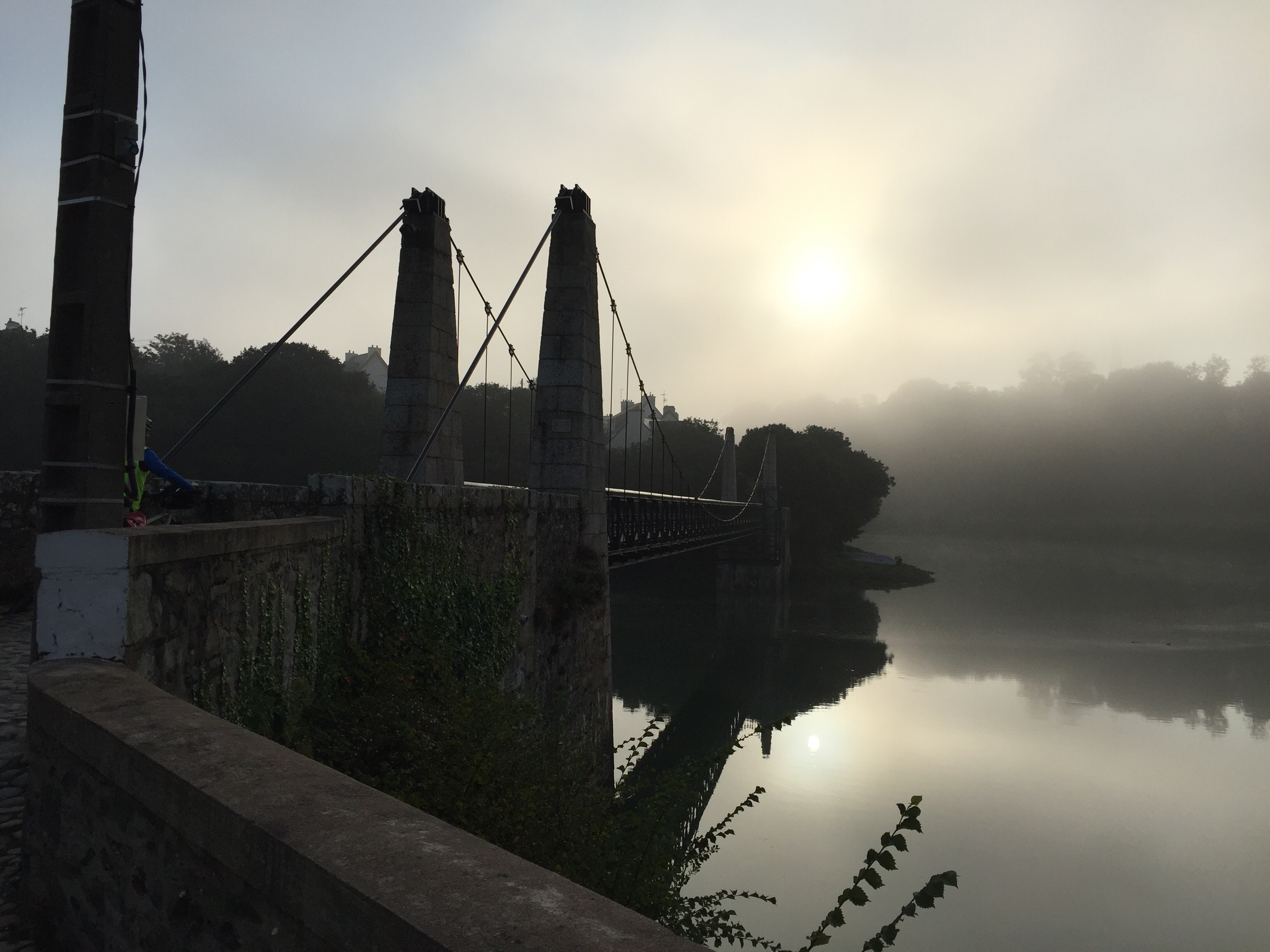 Départ dans la brume, la dame de l’hôtel a dit que c’était signe de beau temps.