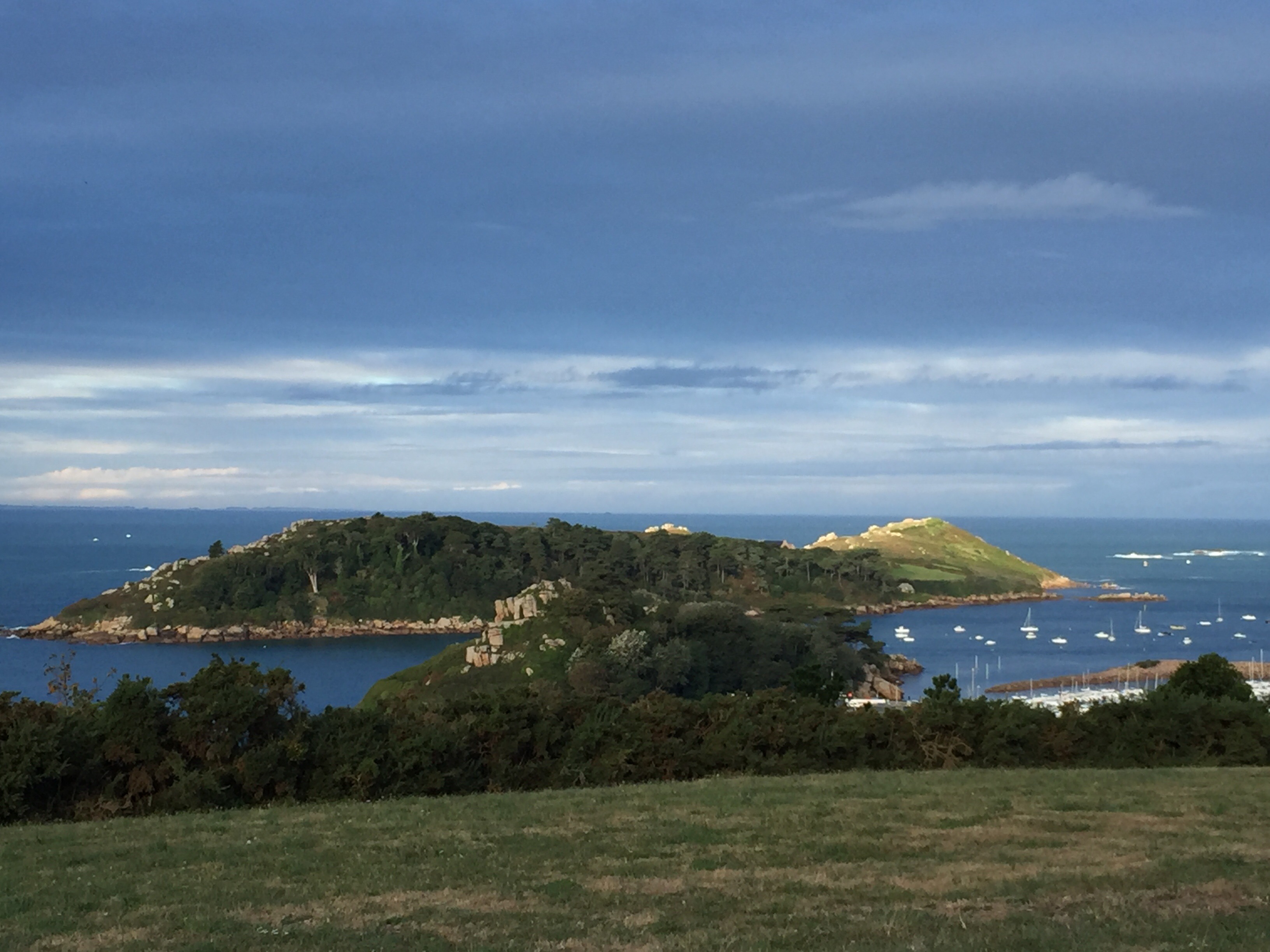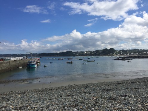 Encore une magnifique journée. La Bretagne est une merveille. C’est vert, fleuri, de belles maisons, un régal. Vallonné, ce qui donne du charme mais c’est ce que mes jambes n’aiment pas !!!