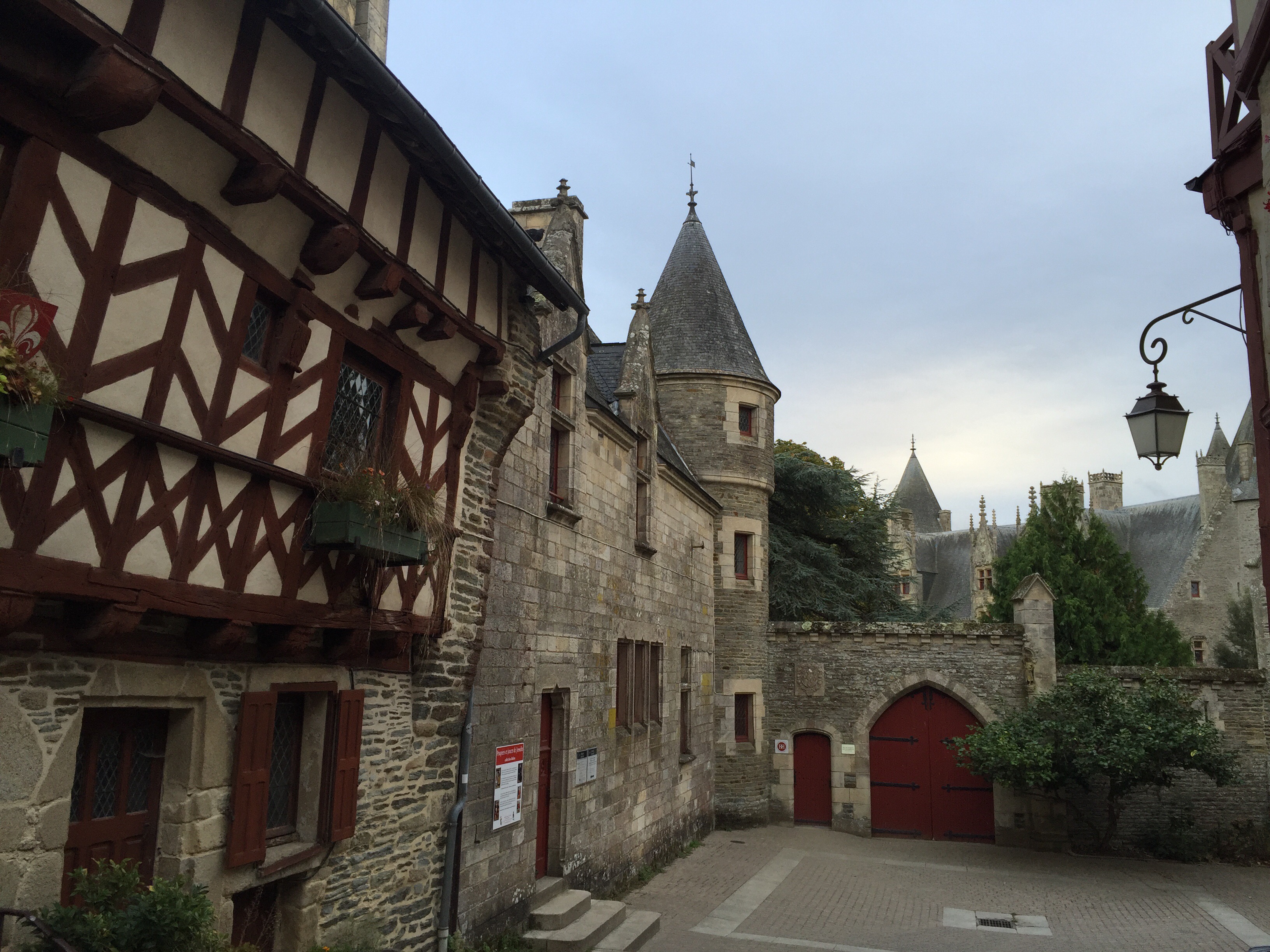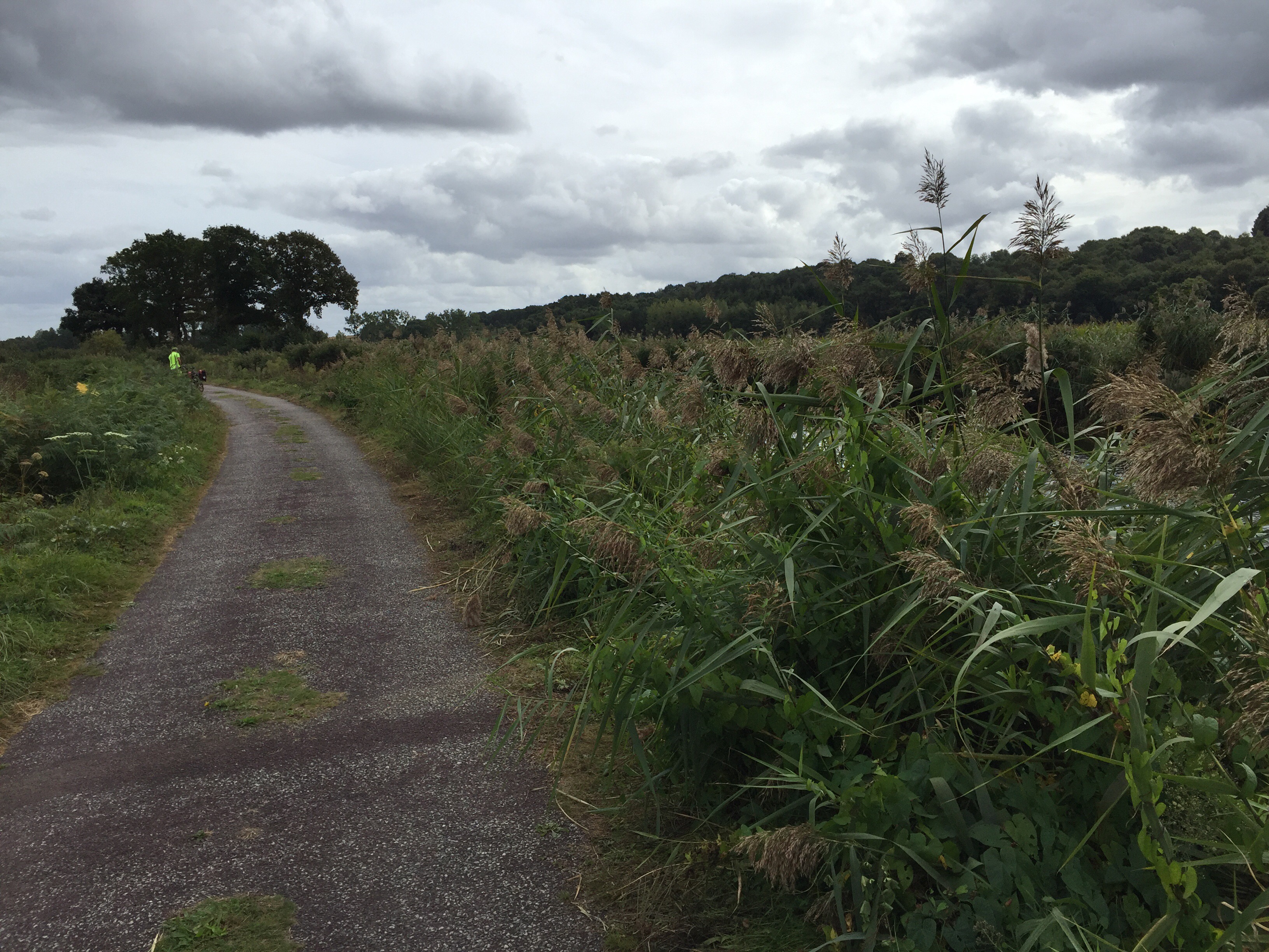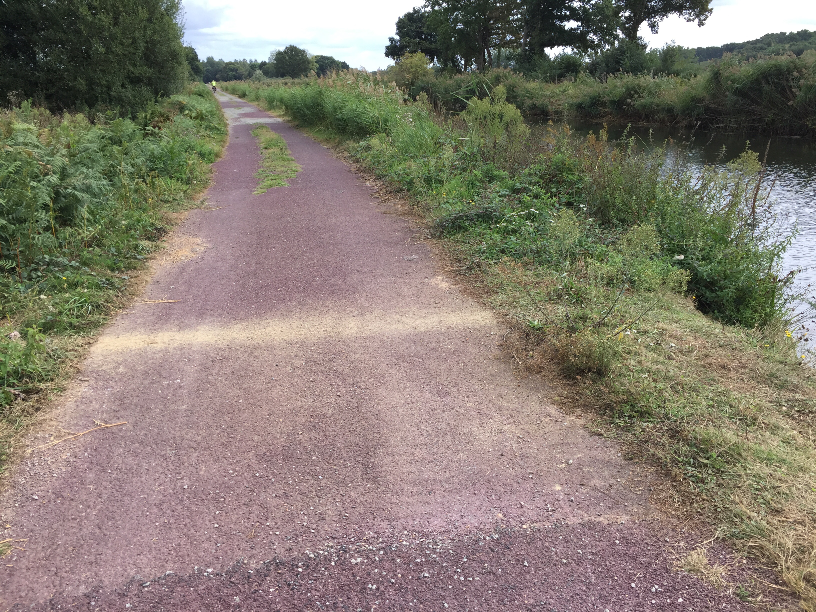 Sur la photo on aperçoit 2 cyclistes. Ils ont mangé à midi dans la même crêperie que nous. Nous les avons retrouvés ce soir à l’hôtel. Demain à Redon ils dorment aussi dans le même que nous. Coïncidence ou alors il n’y a peut-être pas beaucoup de choix !!! Hé oui ma Sophie, j’ai déjà réservé pour demain !!!Le trait clair sur la route correspond à un passage d’animaux. Il y en a énormément. L’aspect du canal change très souvent. Par moments il est large, étroit, sinueux, rectiligne …La première péniche que nous voyons circuler sur le canal. Le château de Josselin. Je crois que j’ai mis un peu, beaucoup de photos aujourd’hui. Internet est si rapide que c’est un régal de les importer.