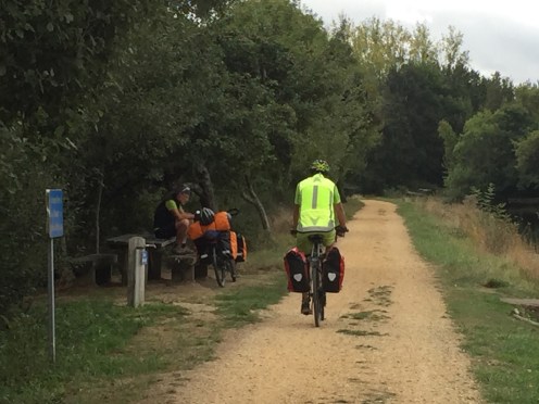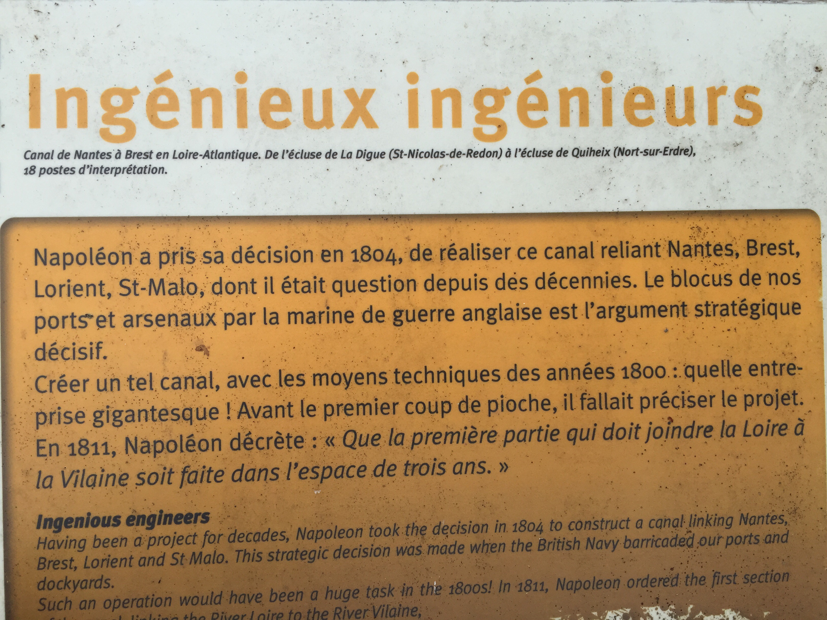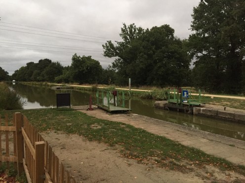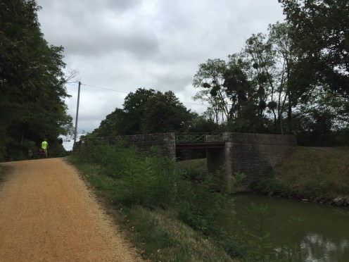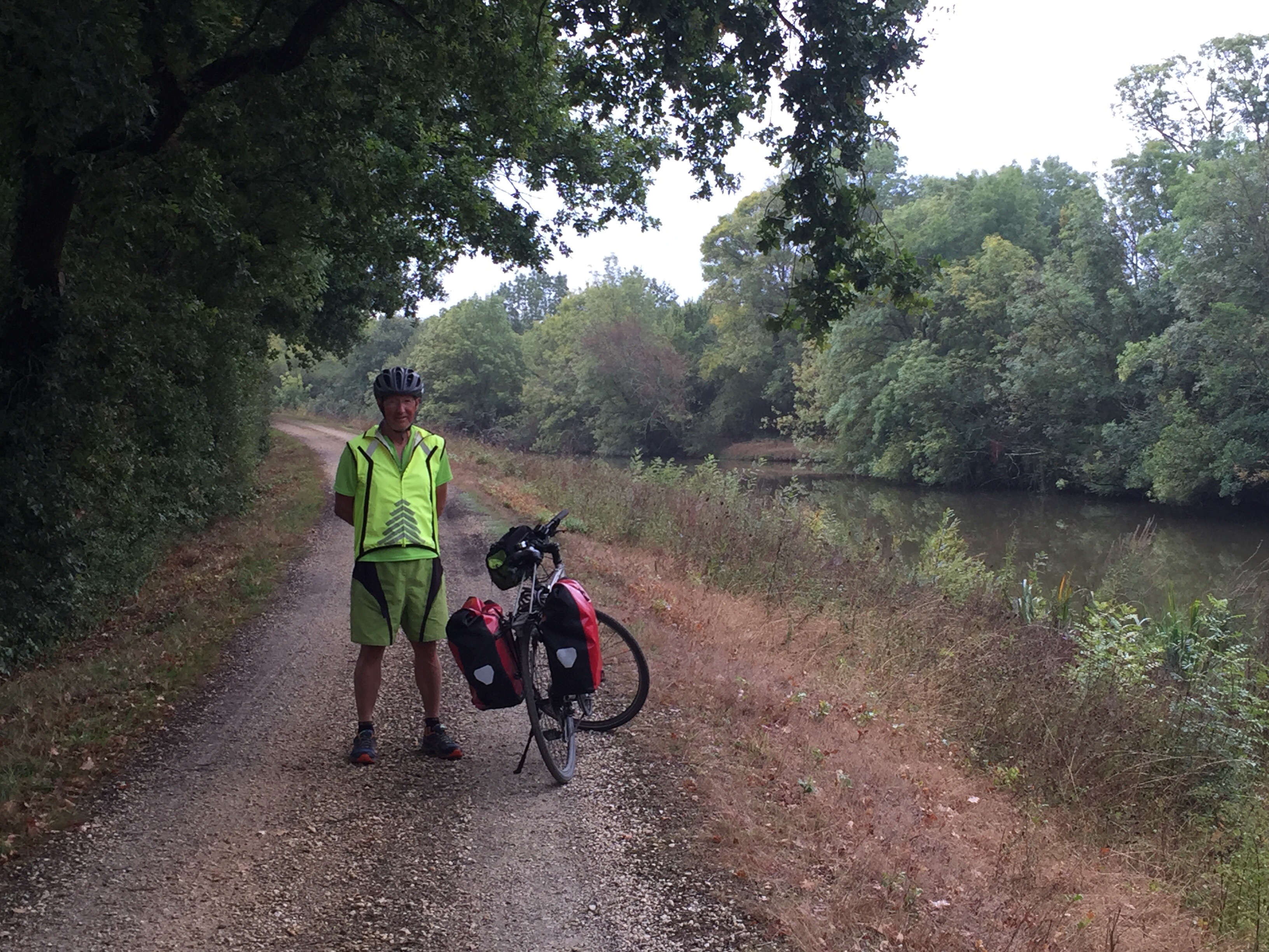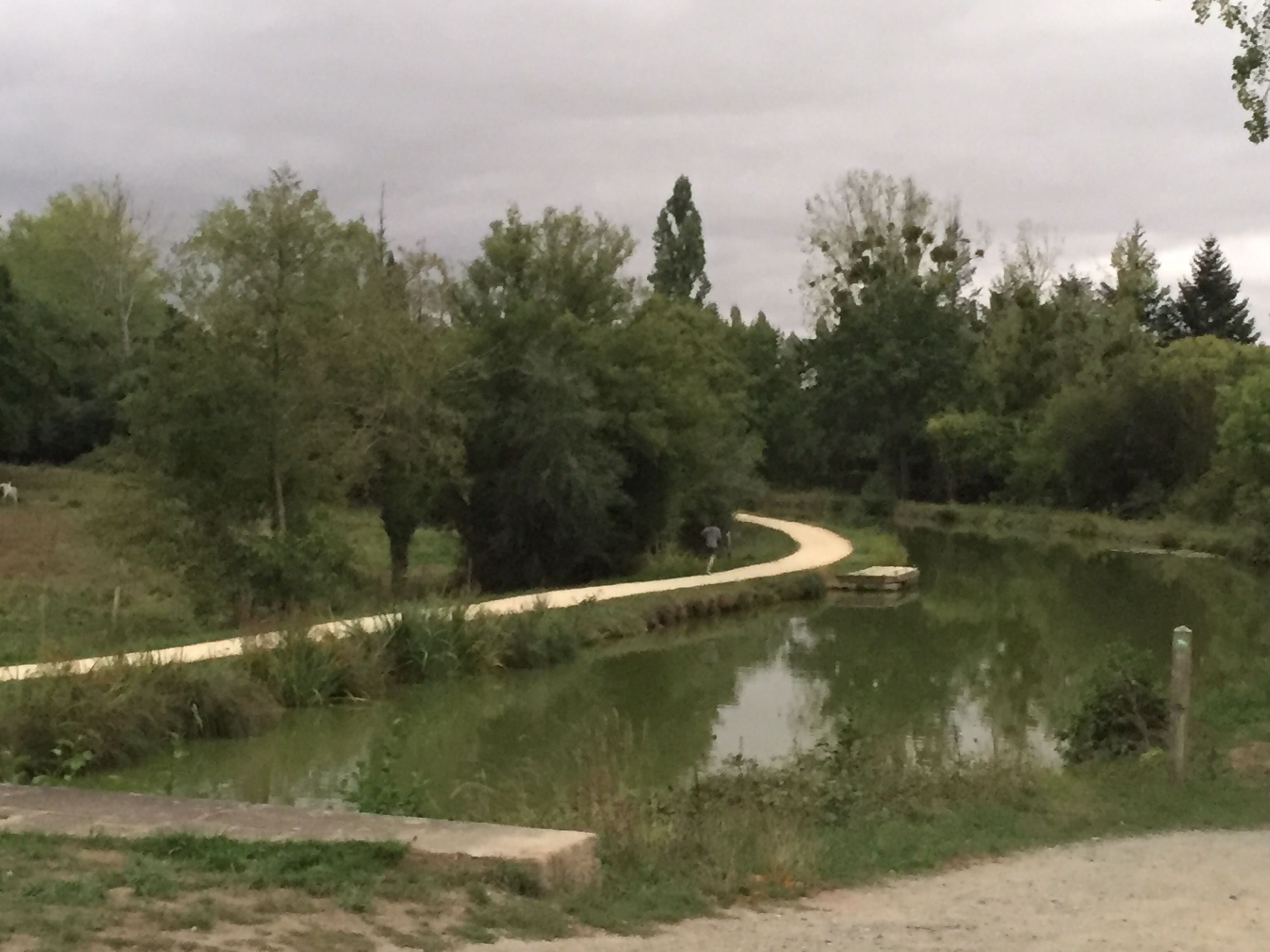 Redon – Guenrouët – Blain – Écluse n•3 la Tindière – 71 kmÇa commence bien droit. C’est très rare de trouver une barrière entre le canal et nous. C’est ma journée champignons. Ce n’est pas le même endroit mais c’est toujours aussi droit. Aie aie aie Yves m’attend !!! Il a peut-être le rouleau à pâtisserie caché dans son dos. La végétation a envahi le canal. Quelle bonne idée d’avoir mis des clochers aux églises !!! Comme ça on sait qu’on est pas loin d’un village. On ne le voit pas sur la photo mais il avait des cannes à pêche partout, dans tous les sens !!!Nous dormons à l’écluse n•3 …Pause cigarette. Il est bien plus chargé que nous et les deux fois où il nous a doublé il nous a laissé sur place !!!Le château de Blain. À chaque route qui croise le canal, une petite montée !!!Au bout de la ligne droite, notre écluse. Nous voici maîtres des lieux pour la nuit. La propriétaire est rentrée chez elle et nous sommes les seuls clients ce soir de ce gîte.