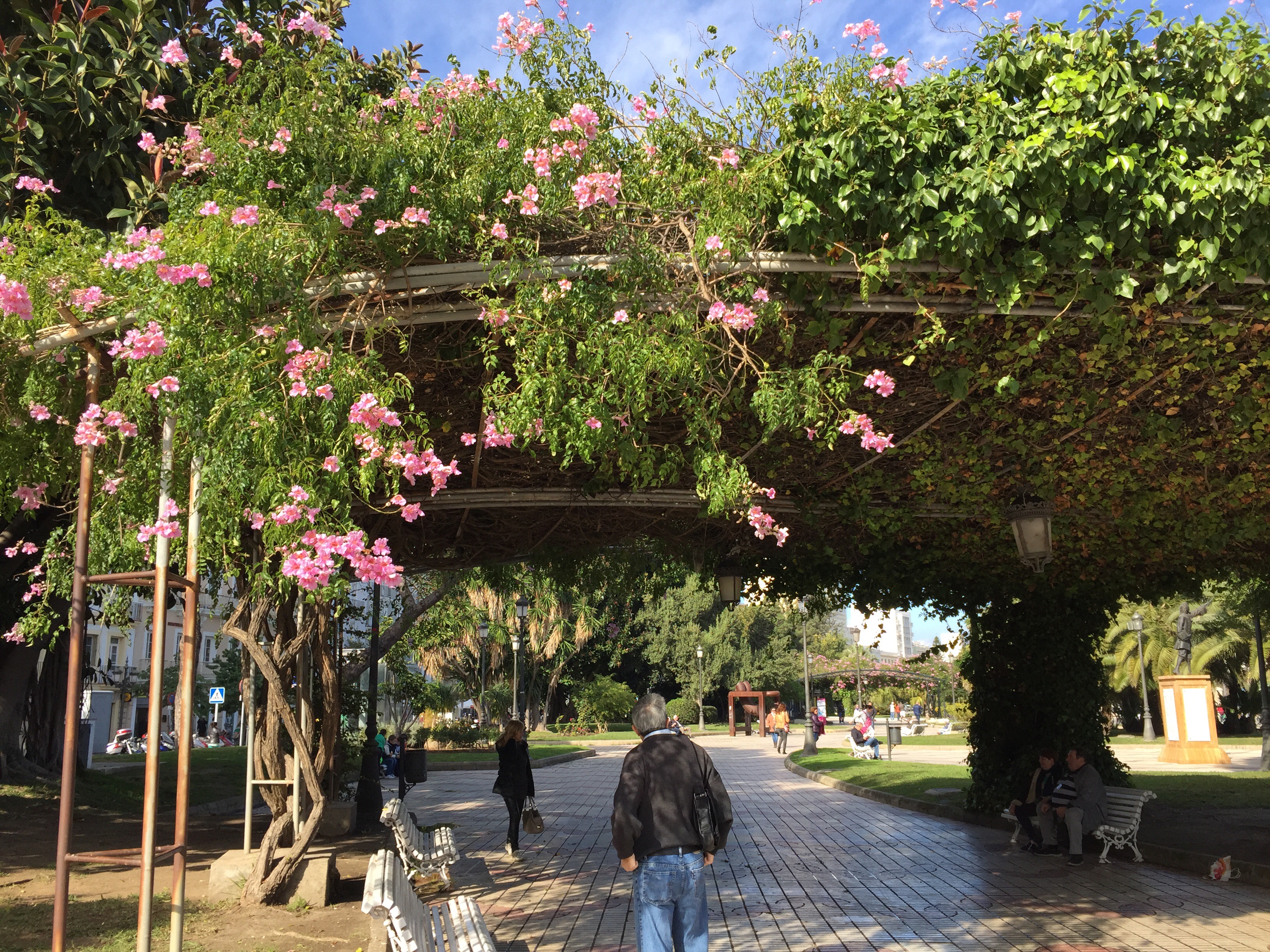 Super le reportage…mais il a été long à charger !! Quel est le nom de l’arbre à la branche étayée ? Fort sympa cette ville de Cadiz vue par des méridionaux en goguette ! J’aime bien aussi le landau et les « mamettes » en fait …tout me plaît et …j’en redemande !! Zou en route !!