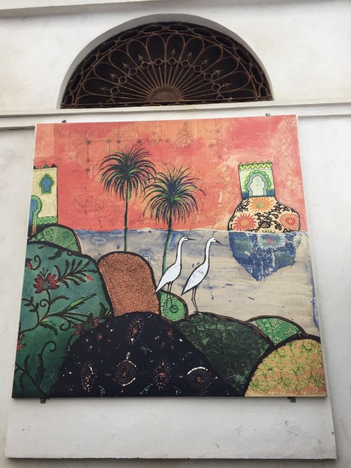 À l’extérieur du marché de grands tableaux servent de décor. Ici c’est pour le jour des morts du 2 novembre.