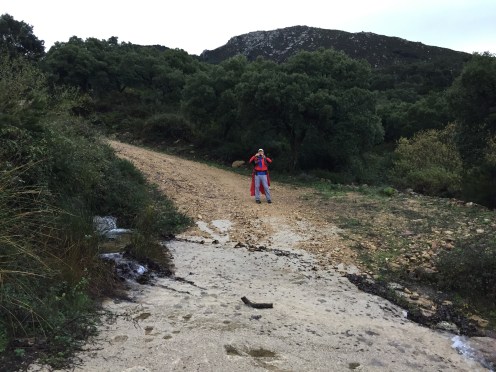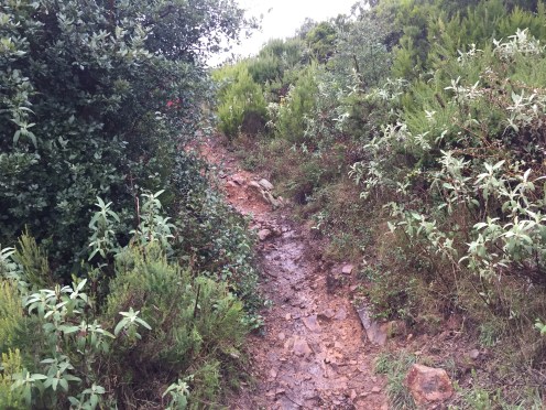 Aujourd’hui nous avons fait 4 kilomètres de plus que ce qui était marqué sur le site qui nous donne notre trajet. Nous n’avons pas trouvé le dernier chemin et nous avons fini sur la route. Vu l’eau qu’il y avait, je pense qu’il n’aurait peut-être pas été praticable.