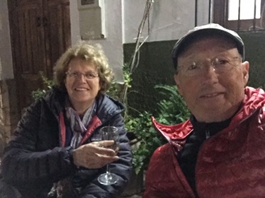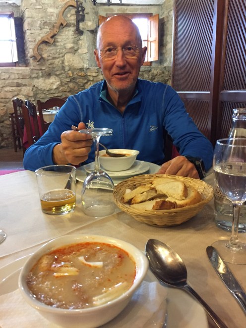 Le parcours a été très beau et la pluie ne nous a pas gênés. Je rajoute une petite photo de nuit prise lorsque nous sommes allés acheter le pique-nique de demain. Le trajet est plus long, nous n’arriverons pas à l’heure du repas même si on mange tard en Espagne.