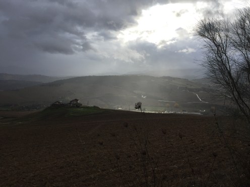 Un tout petit coin de ciel bleu. Notre logeur nous a prédit une forte aggravation de la pluie vers 11 h du matin.