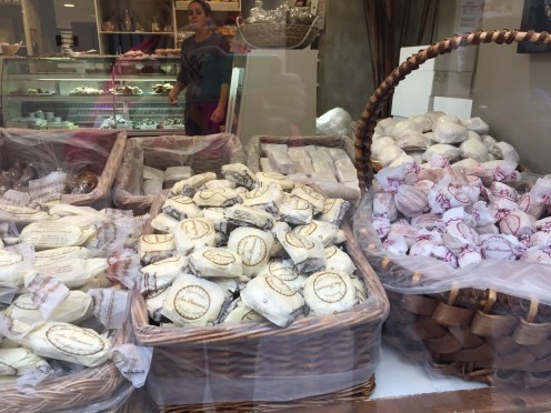 Les vitrines sont remplies de mantequados et de polvorones. C’est la spécialité de la ville.