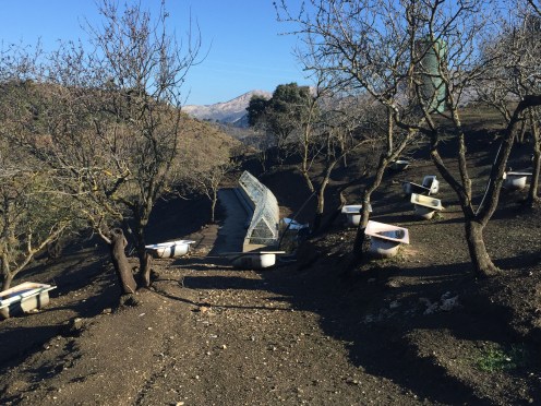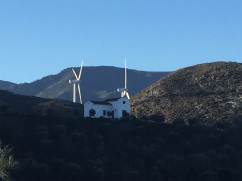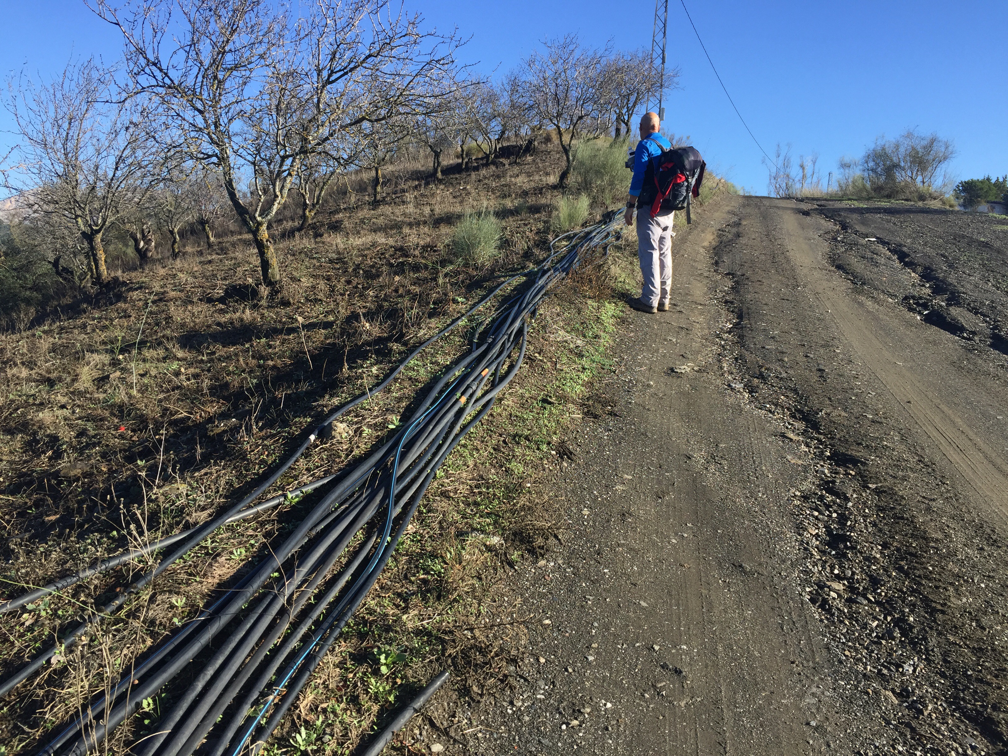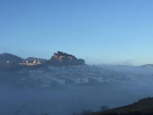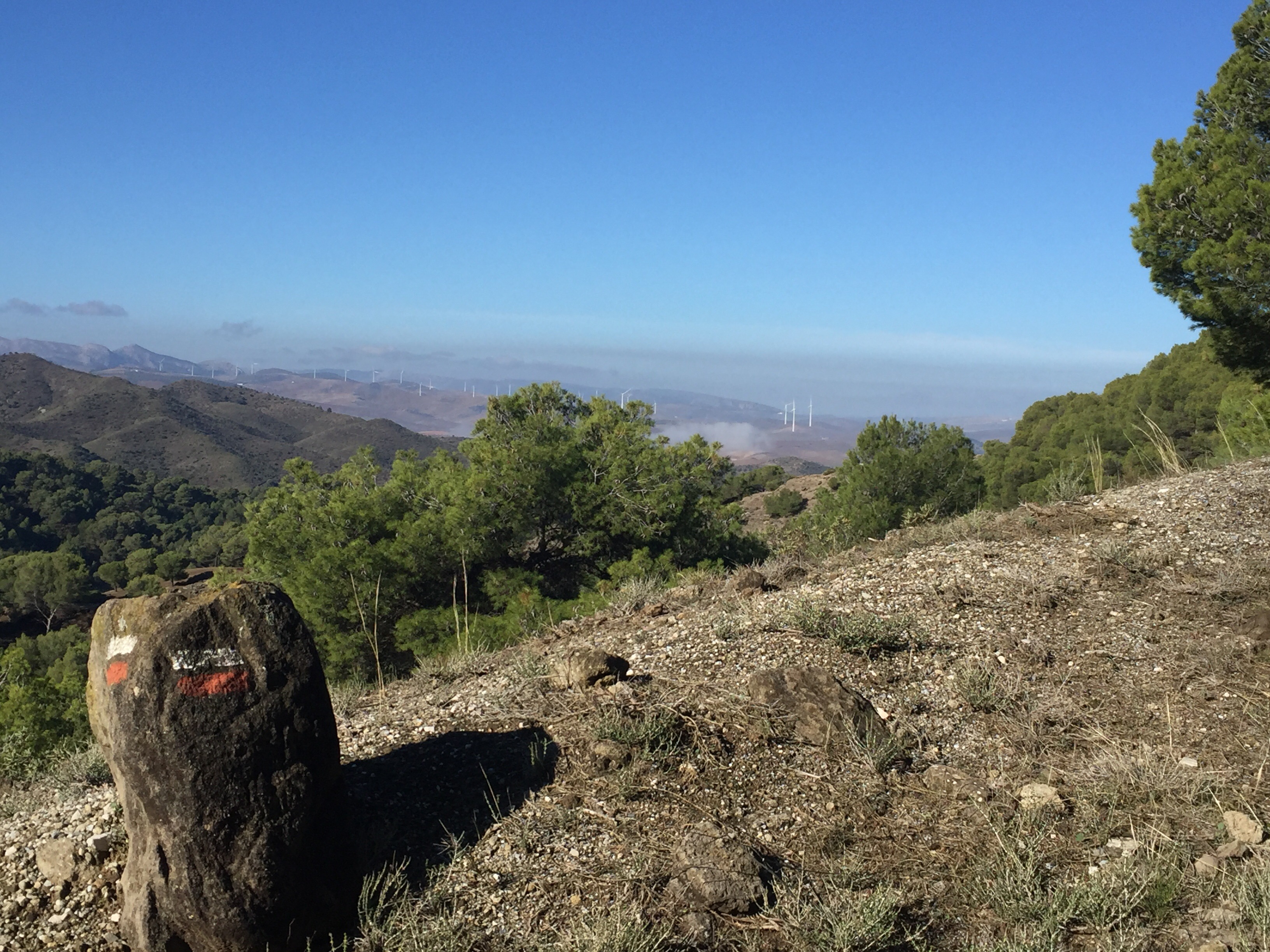 La Constitution espagnole, publiée au Journal officiel de l’État le 29 décembre 1978, est entrée en vigueur le jour même.Enfin, il fait beau, toute la vallée est dans le brouillard. On commence par monter sur de beaux chemins. Pour redescendre ensuite. Un collectionneur ???Une multitude de tuyaux le long du chemin ???Le réservoir. Les tuyaux servent à l’approvisionnement des maisons. Si au début je trouvais que la signalisation du GR était vraiment absente, aujourd’hui pas question de se tromper, il est bien signalé partout. Un site archéologique en contrebas de la route : l’église mozarabe de Bobastro. Un peu d’ombre. C’est très rare depuis Tarifa. Je ne pense pas que je pourrais faire cette rando en période plus chaude. Aujourd’hui j’ai transpiré pratiquement tout le long malgré mon T-shirt à manches courtes.