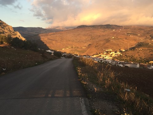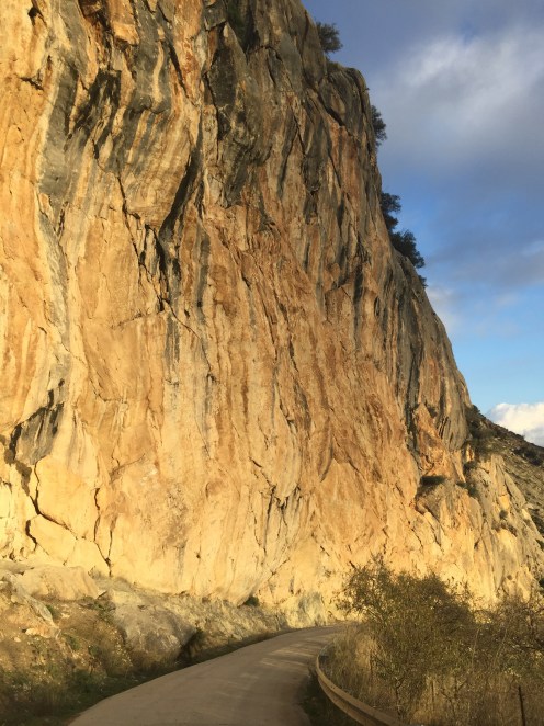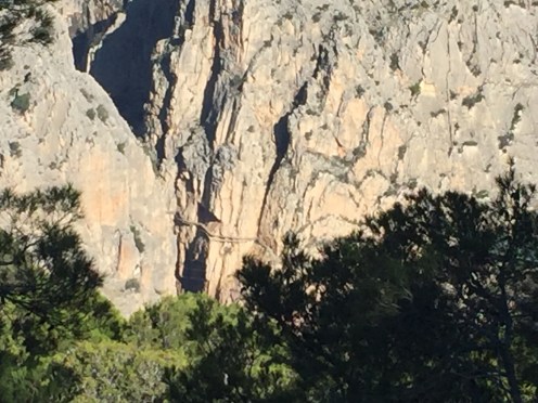 Il faut dire qu’on a fait 1100 m de montée et 1100 m de descente !!!Sur la montagne en face, un trait horizontal. C’est le Caminito del Rey, la grande attraction du coin.
