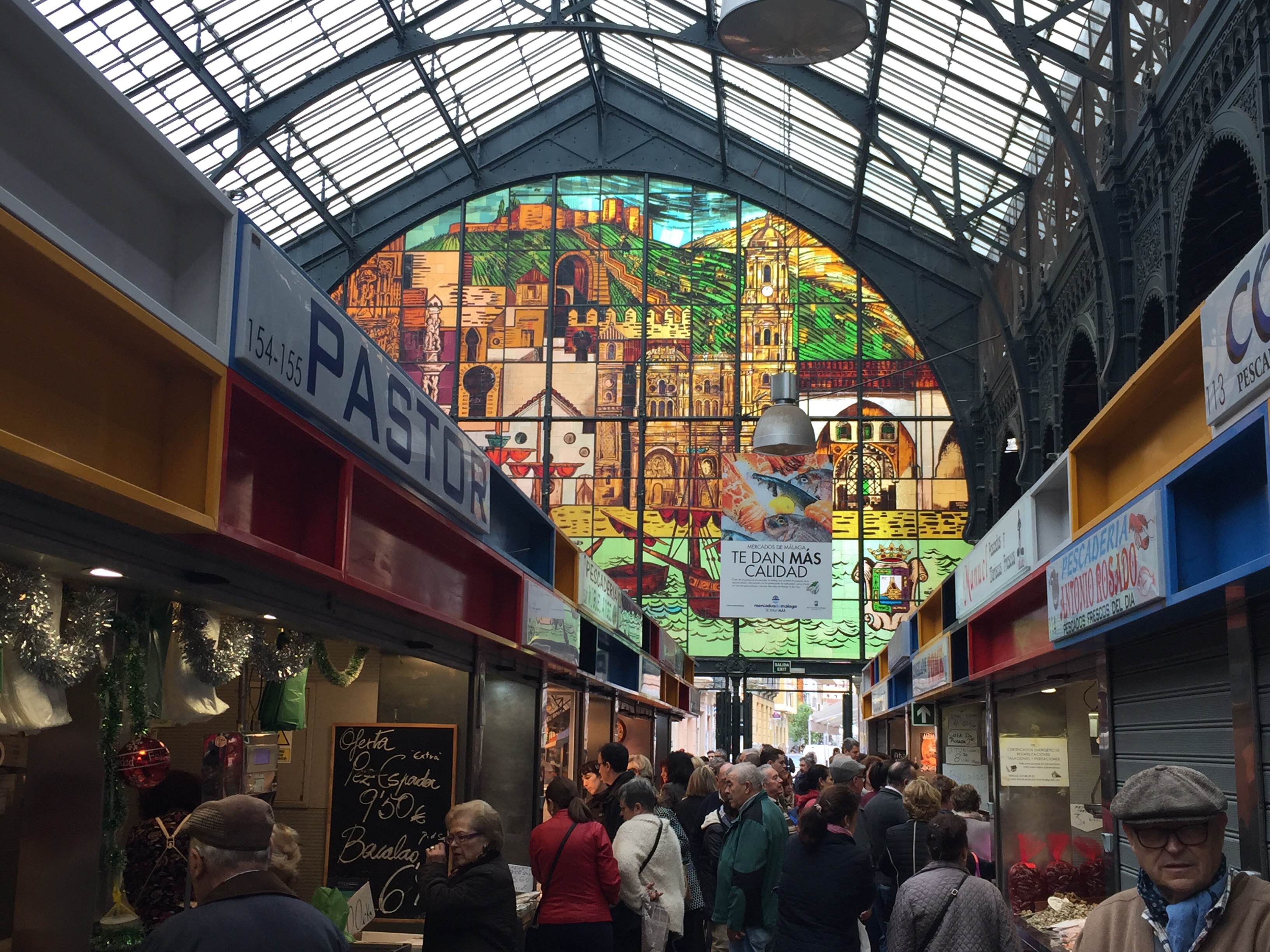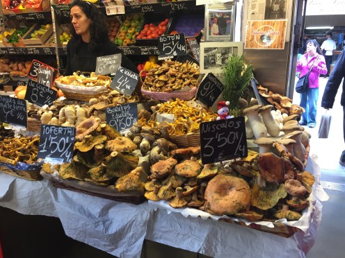 Le marché de Atarazanas. Un bel assortiment de champignons. Les pieds de moutons s’appellent ici des langues de vaches !!!