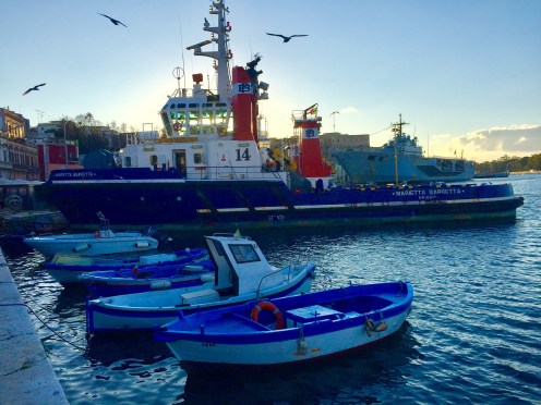 Départ à 8 h de la gare Tiburtina. Arrêt vers midi sur une aire d’autoroute pour manger et arrivée à Brindisi vers 15 h30 après avoir fait un détour par Tarente, détour car nous sommes passés à proximité de Bari et nous ne sommes pas allés tout droit vers Brindisi.
