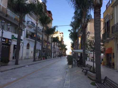 L’avenue qui descend vers la mer est tout aussi vide.