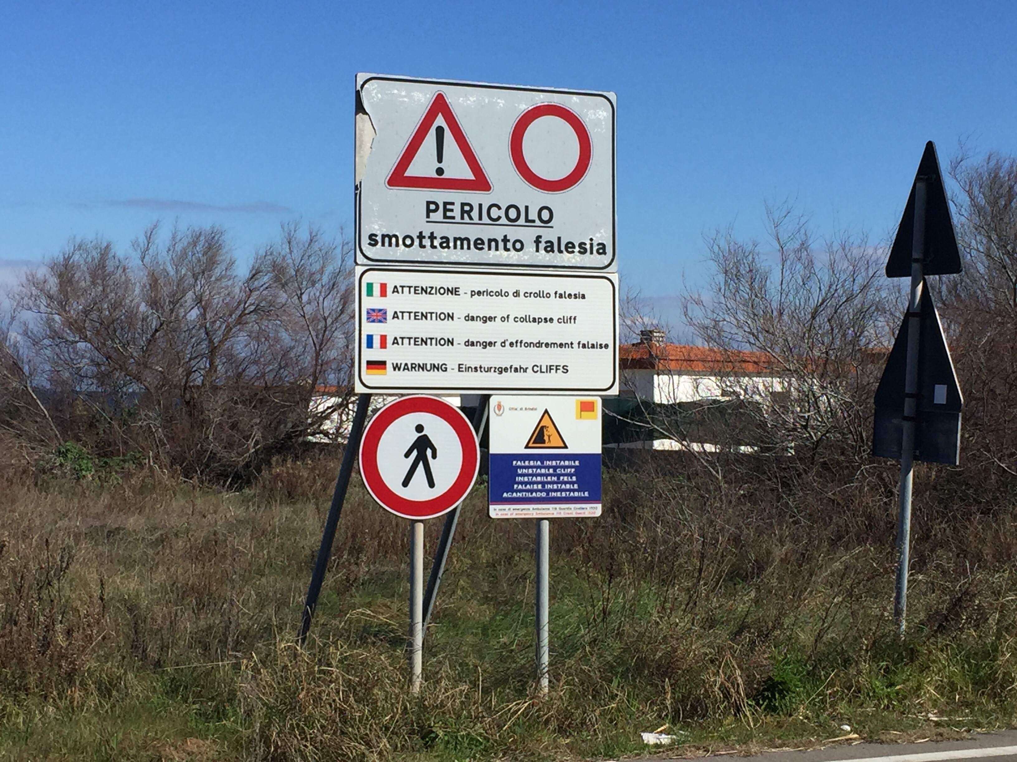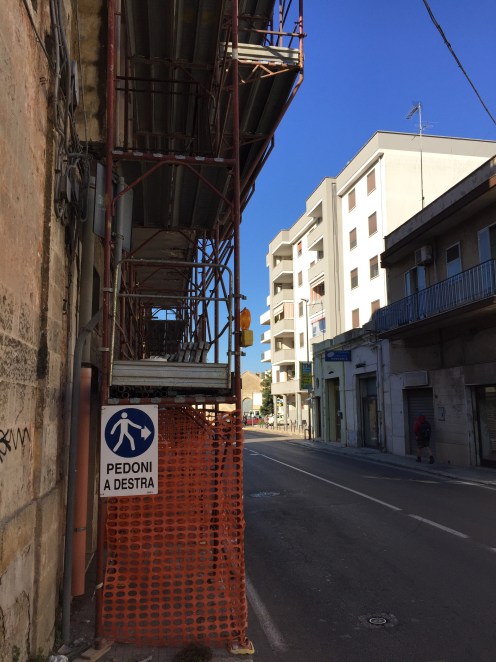 100 m avant ils nous ont dit : « Pedoni a sinistra » !!! Bon, on change de trottoir à nouveau.
