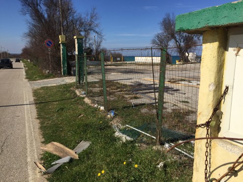 Les rares bâtiments devant lesquels nous passons sont abandonnés et délabrés. Je pense que c’est la première fois que nous avons un début de randonnée aussi laid !!!