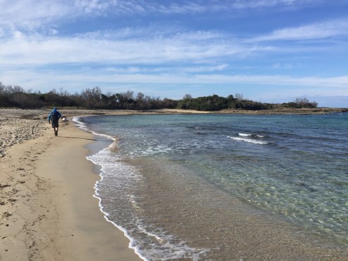Km 20, nous rentrons dans la réserve naturelle de Torre Guaceto. Zone marine protegee. Ça va être beau et prooooooopre !!!