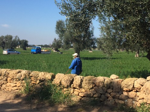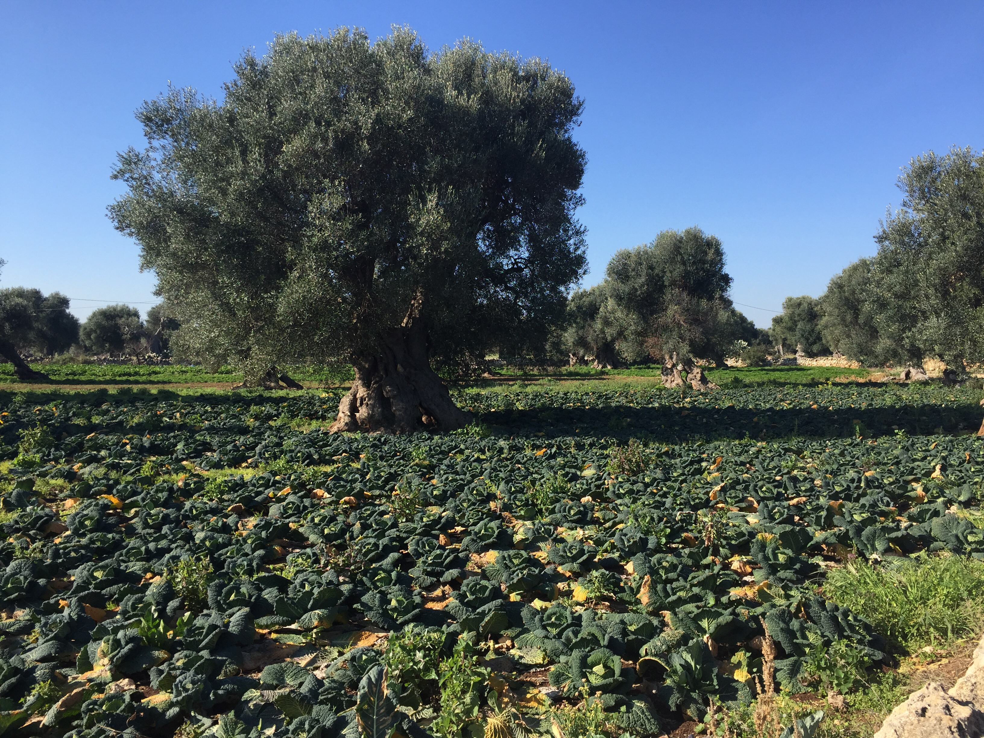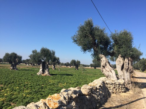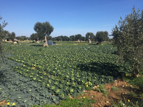 Nous retrouvons les 50 à 60 millions d’oliviers qui recouvrent les Pouilles !!! Cette fois nous allons voir très souvent du maraîchage à leur pied.