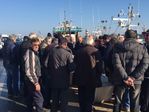 Vente de poisson sur le port. Il n’y a que des hommes qui achètent.
