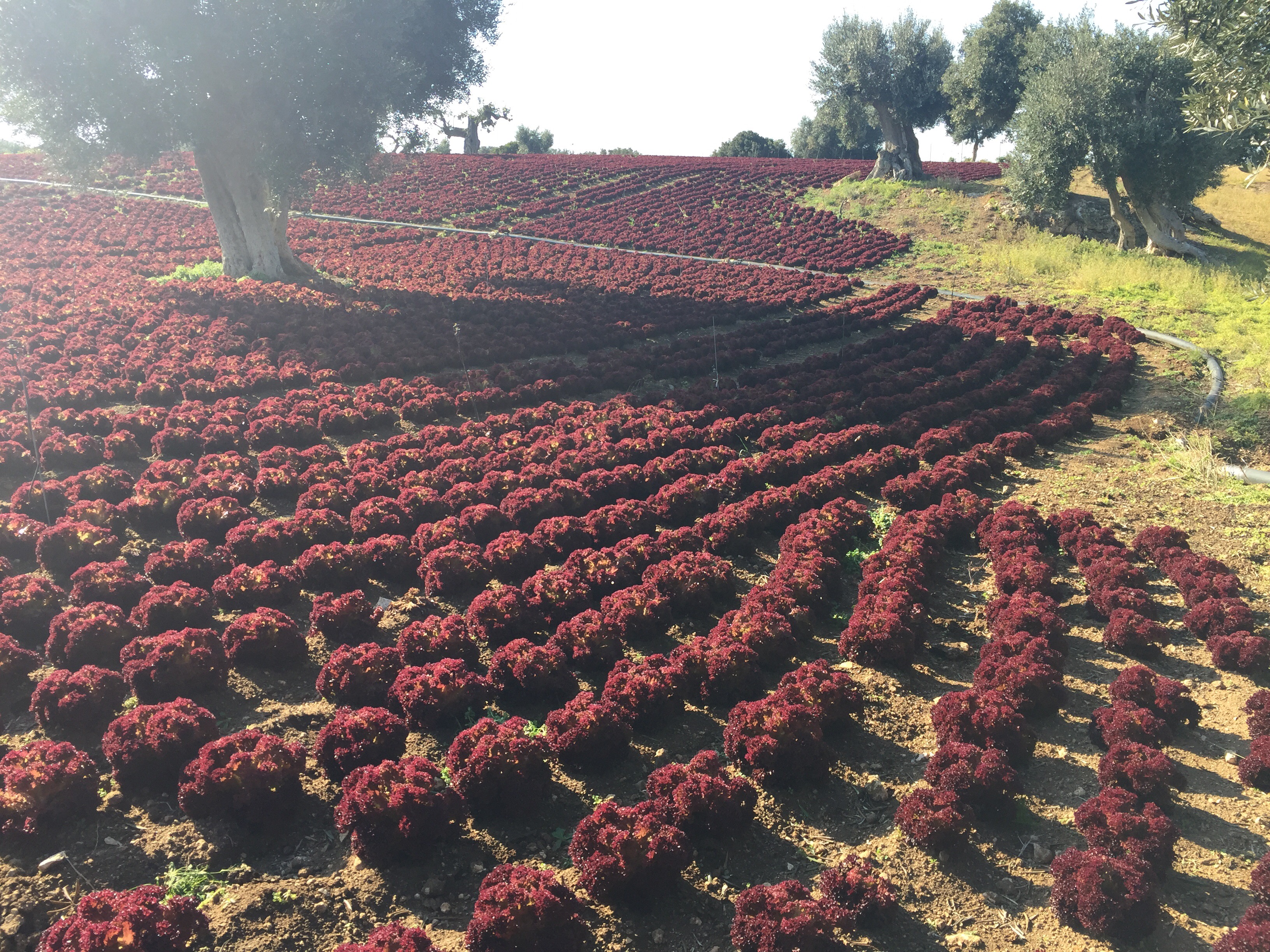 Des frisées rouges. À cause du soleil, je n’ai pas le rendu réel.