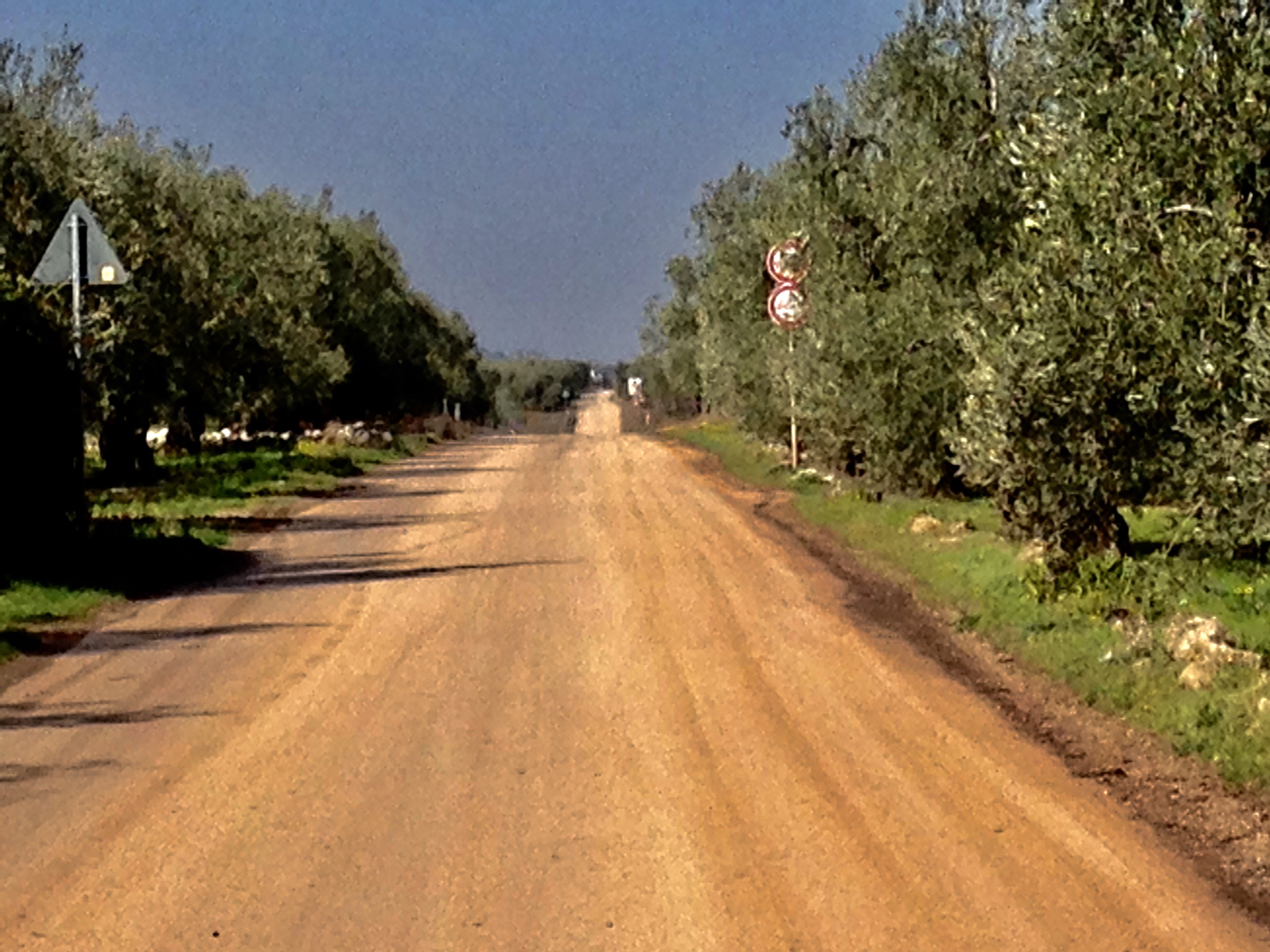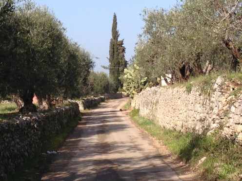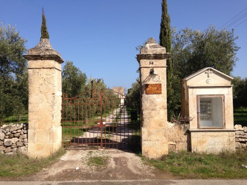 Me voilà parti seul pour une bonne séance de marche accélèrée. Belle sortie de Corato, puis de nombreuses villas anciennes avec toit terrasse, allée d’entrée et piliers.
