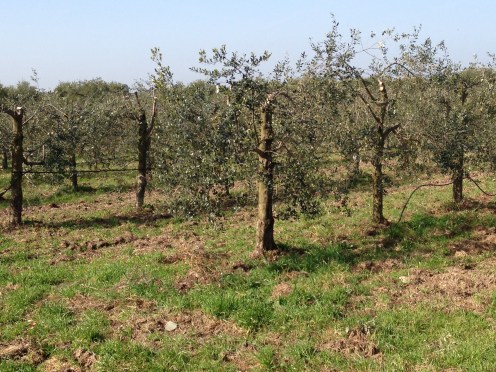 Tiens les premiers vergers d’oliviers palissés, mais aussi des vignes.