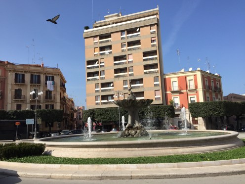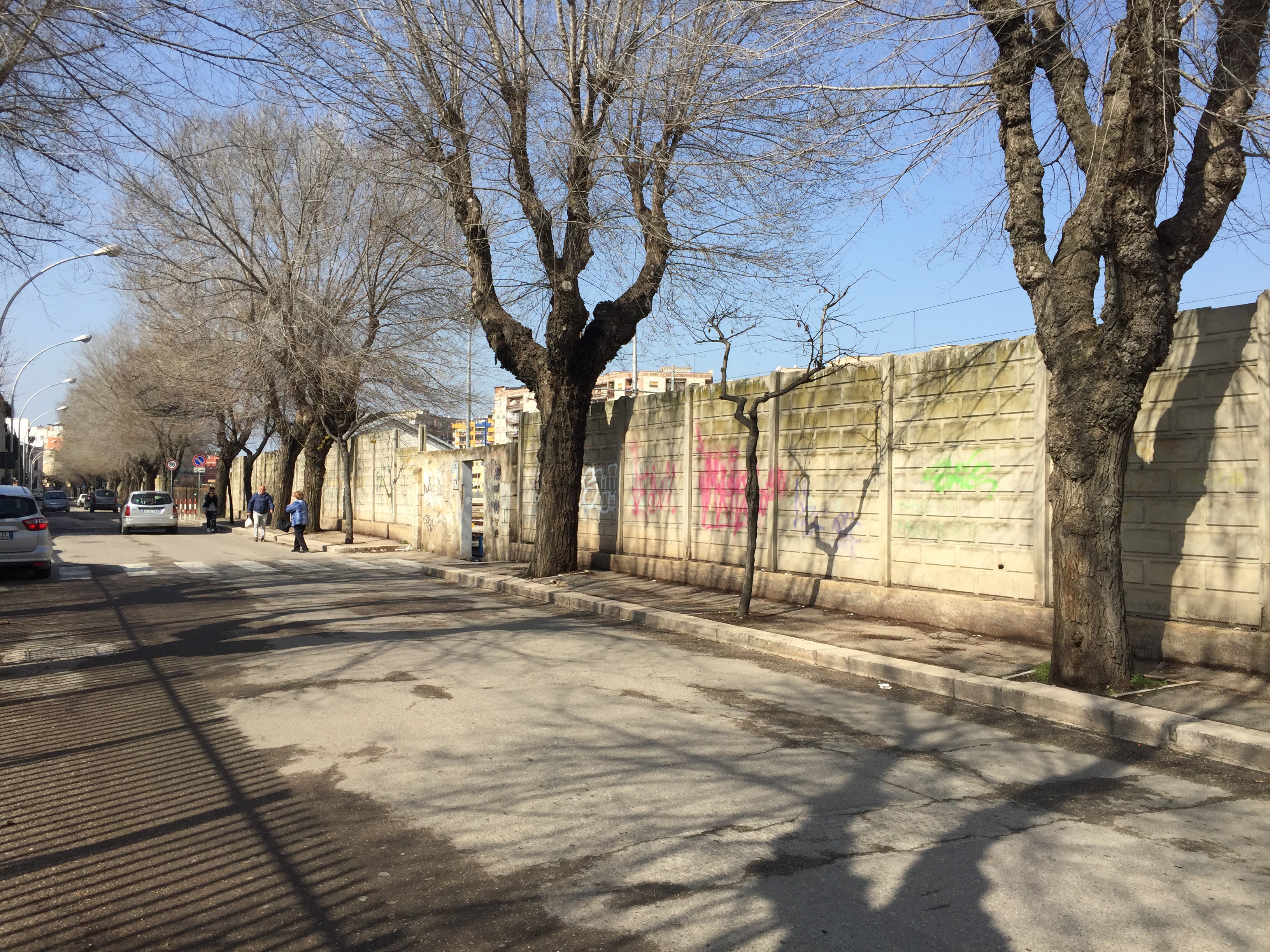 Bus jusqu’à Barletta en passant par Andria. Le bus m’a posée dans cette rue. Heureusement que j’ai demandé où était la gare ??? L’entrée c’est cette petite porte à côté de l’arbre !!! C’est l’arrière de la gare.