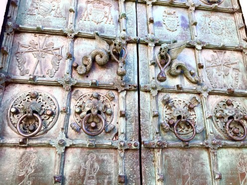 Détail du magnifique portail de la cathédrale. Il est en bronze, d’un beau vert, j’ai eu beau trafiquer la photo, je ne suis pas arrivée à retrouver cette couleur.