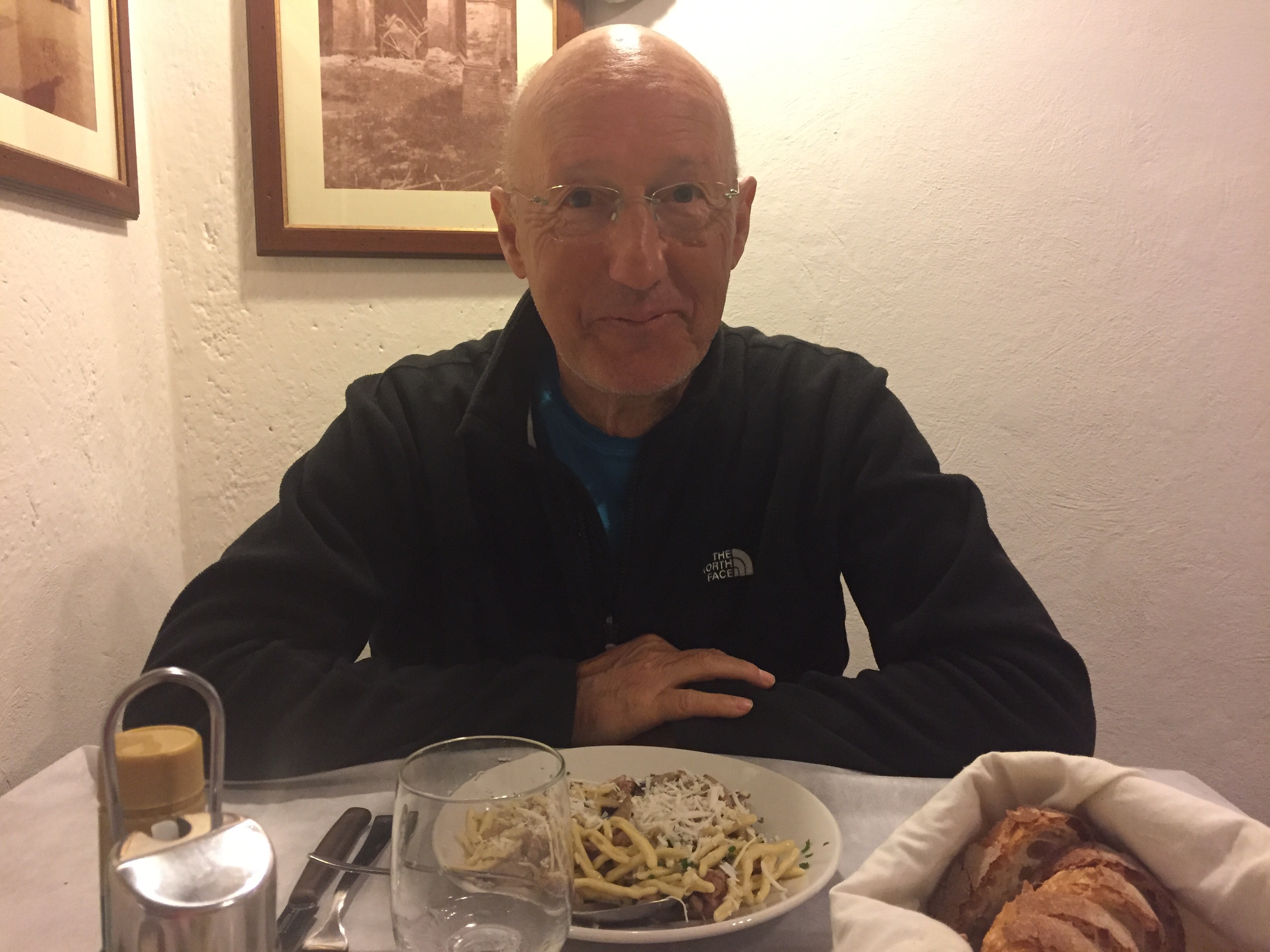 Aujourd’hui l’étape fait 34 km plus les 4 pour retourner au village, 38 km c’est trop pour moi !!! Nous demandons à notre logeur s’il peut nous avancer sur notre étape. Pas de problème, il le fait pour tous les pèlerins. Il nous pose donc sur le parcours, résultat nous ne faisons que 15 km, un régal, à 12 h30 nous sommes arrivés et attablés dans un restaurant !!!