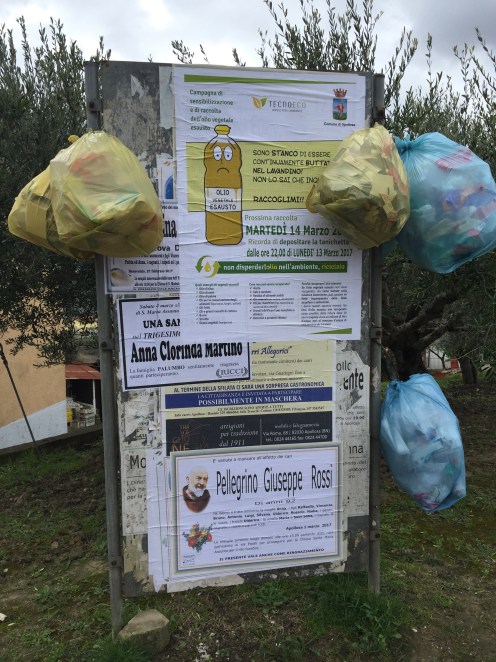 Les sacs poubelles sont tous devant les maisons dans l’attente du camion que nous allons croiser. Ici c’est plus original !!!
