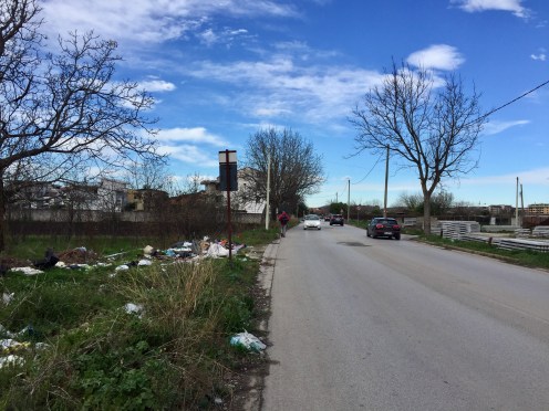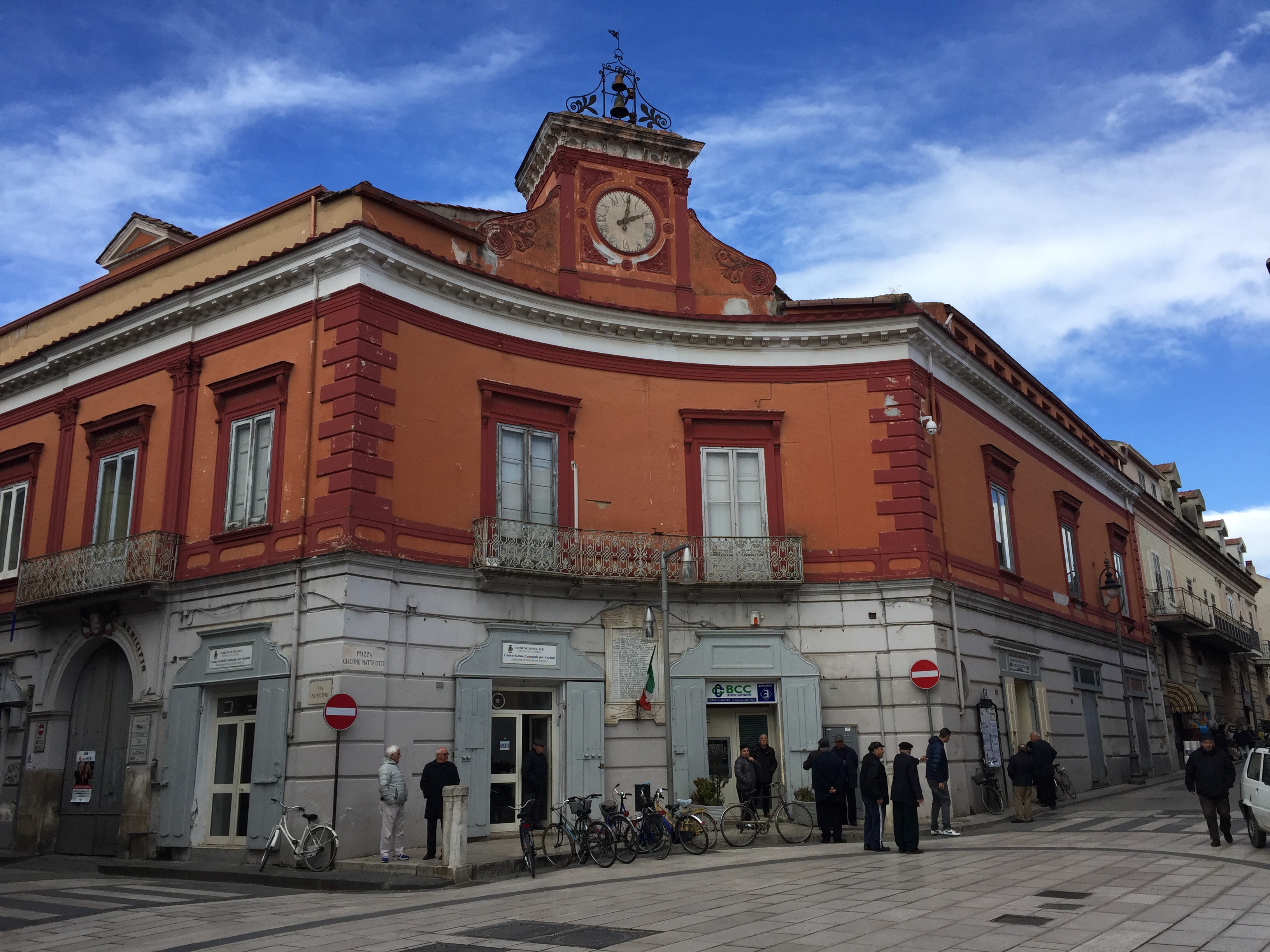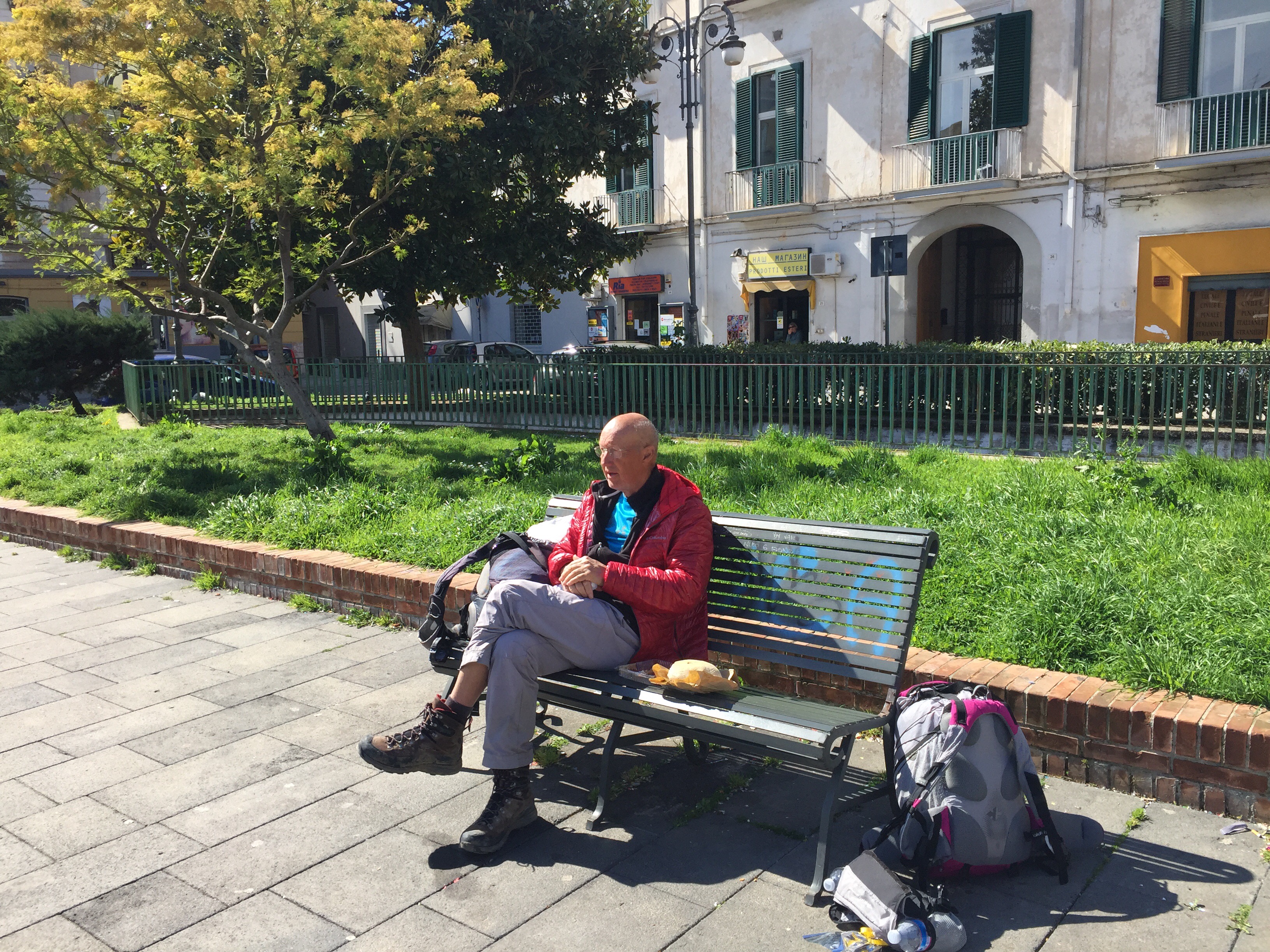 Nous sommes à Santa Maria Capua Vetere, la fin de notre étape du jour qui ne fait que 13 km. Comme la suivante en fait 34, nous décidons d’aller jusqu’au village suivant ce qui nous raccourcira de 9 km cette longue étape.