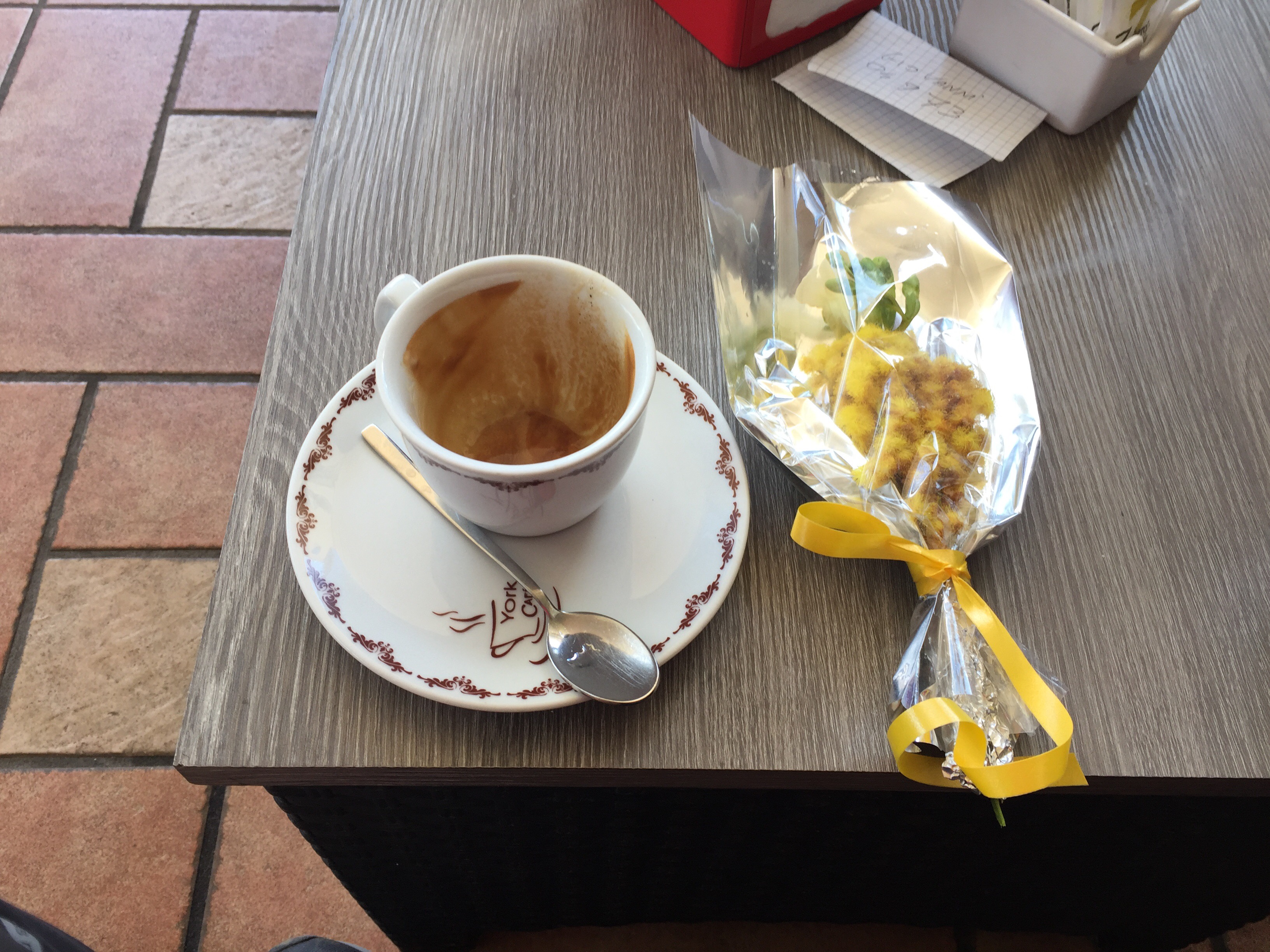 J’ai eu droit à mon petit bouquet avec mon café. Gentille attention du bar.