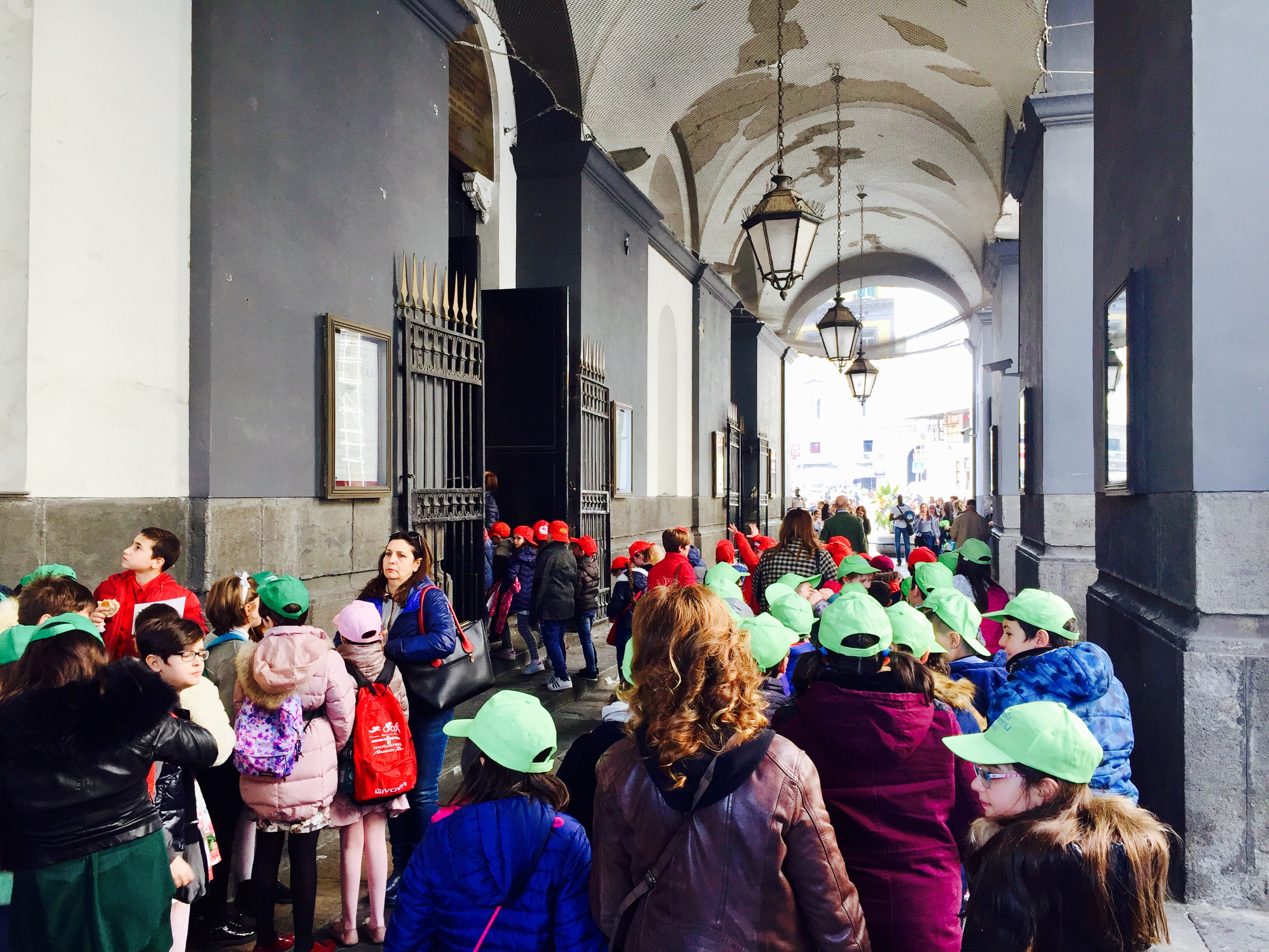 Comme tous les matins, des groupes de scolaires devant les monuments. Cette fois ci, des touts petits.