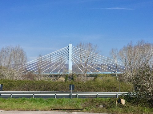 Trois ponts sur la rivière Garigliano, au même niveau. Le pont de l’autoroute.