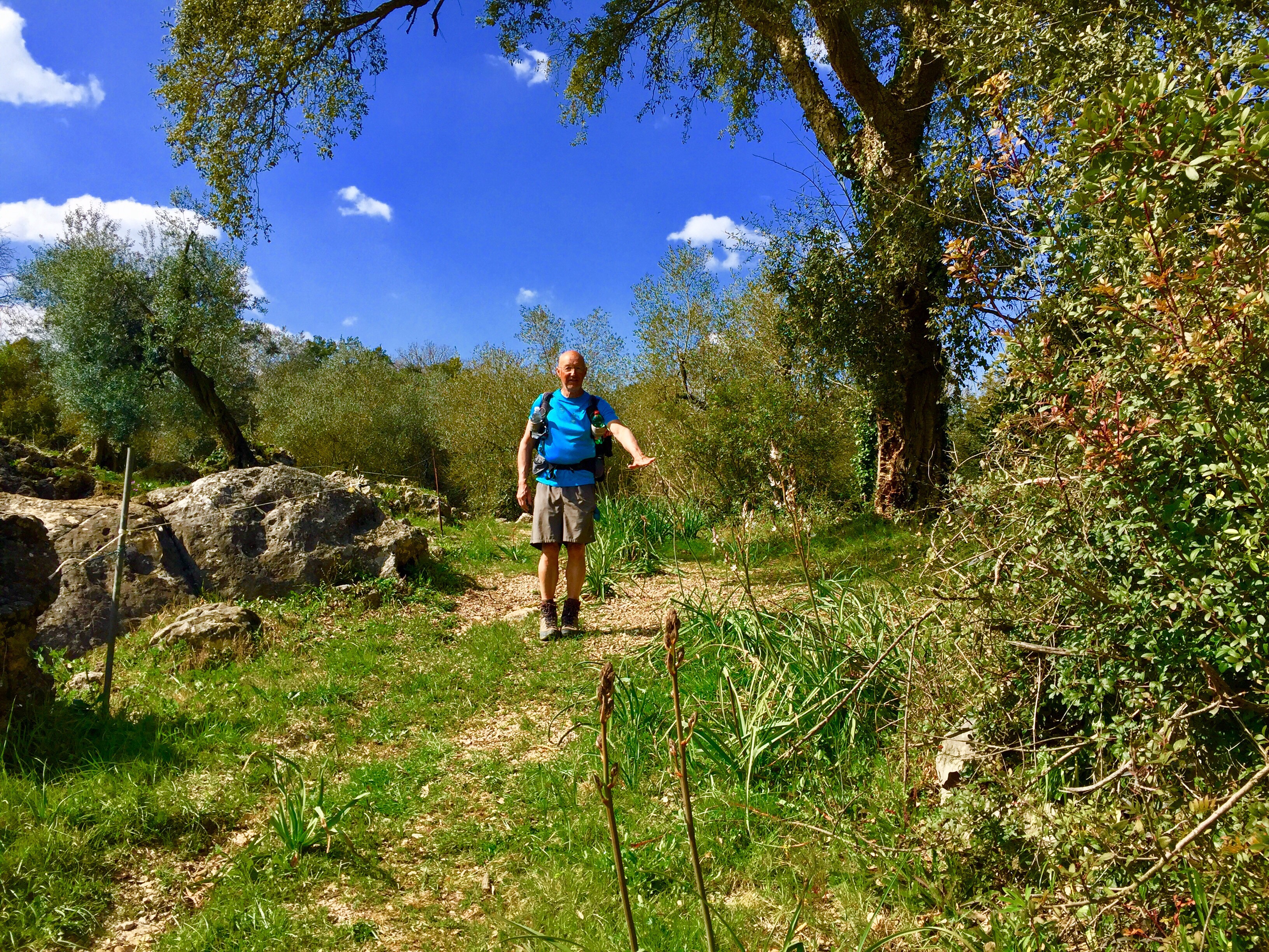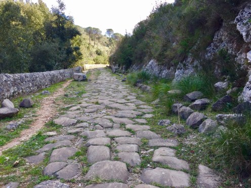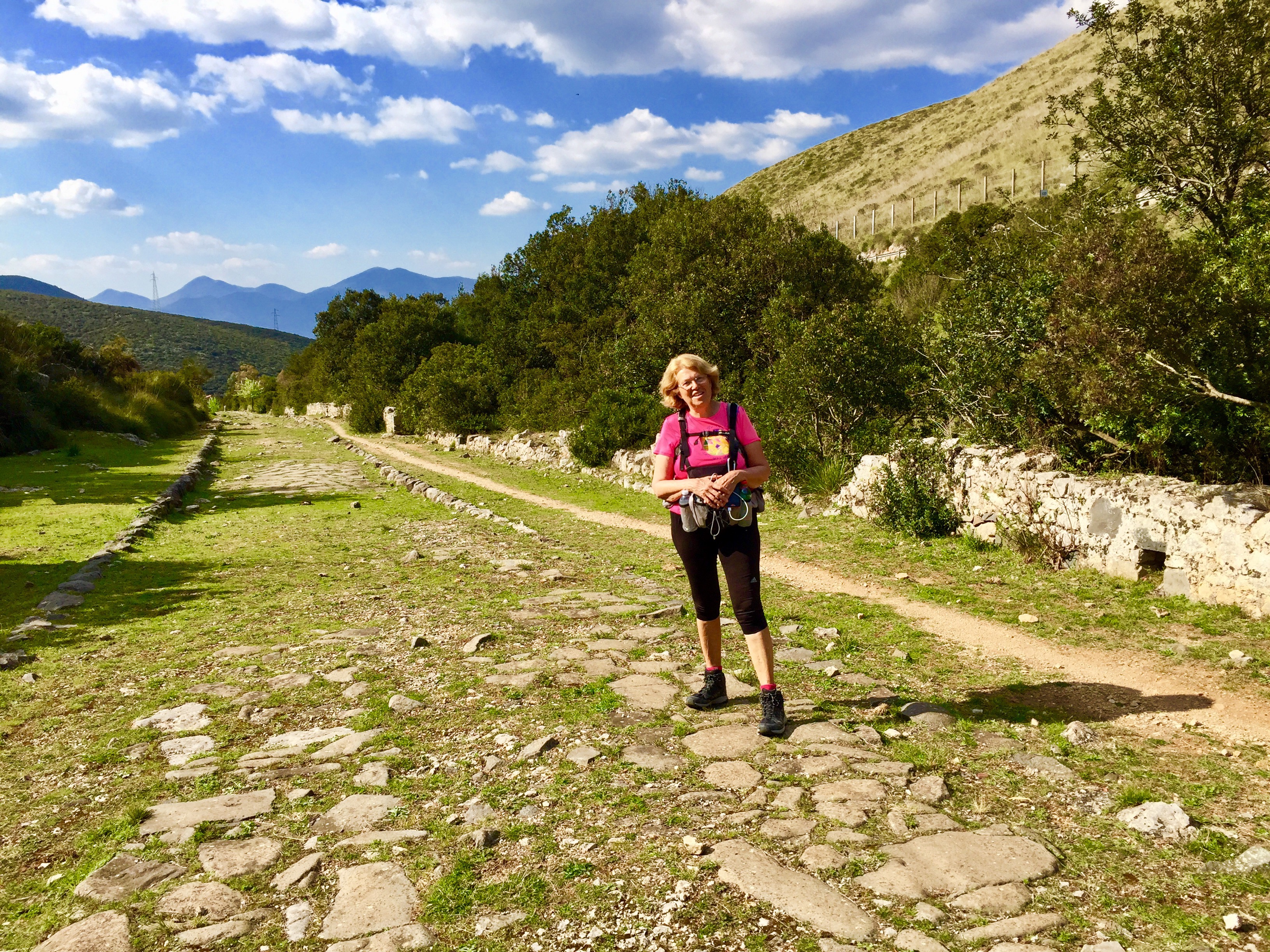 Waou, mamma mia, quelle surprise !!! Nous voici sur un reste de la Via Appia. Quel bonheur de marcher sur cette route qui a 2000 ans !!!