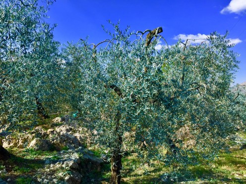 On rencontre même des oliviers bleus tellement qu’ils ont été sulphatés.