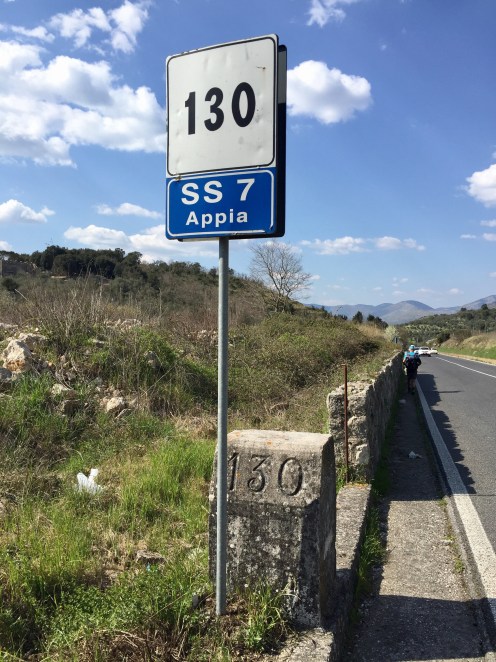 Passage sur la Via Appia avec ses bornes kilométriques.