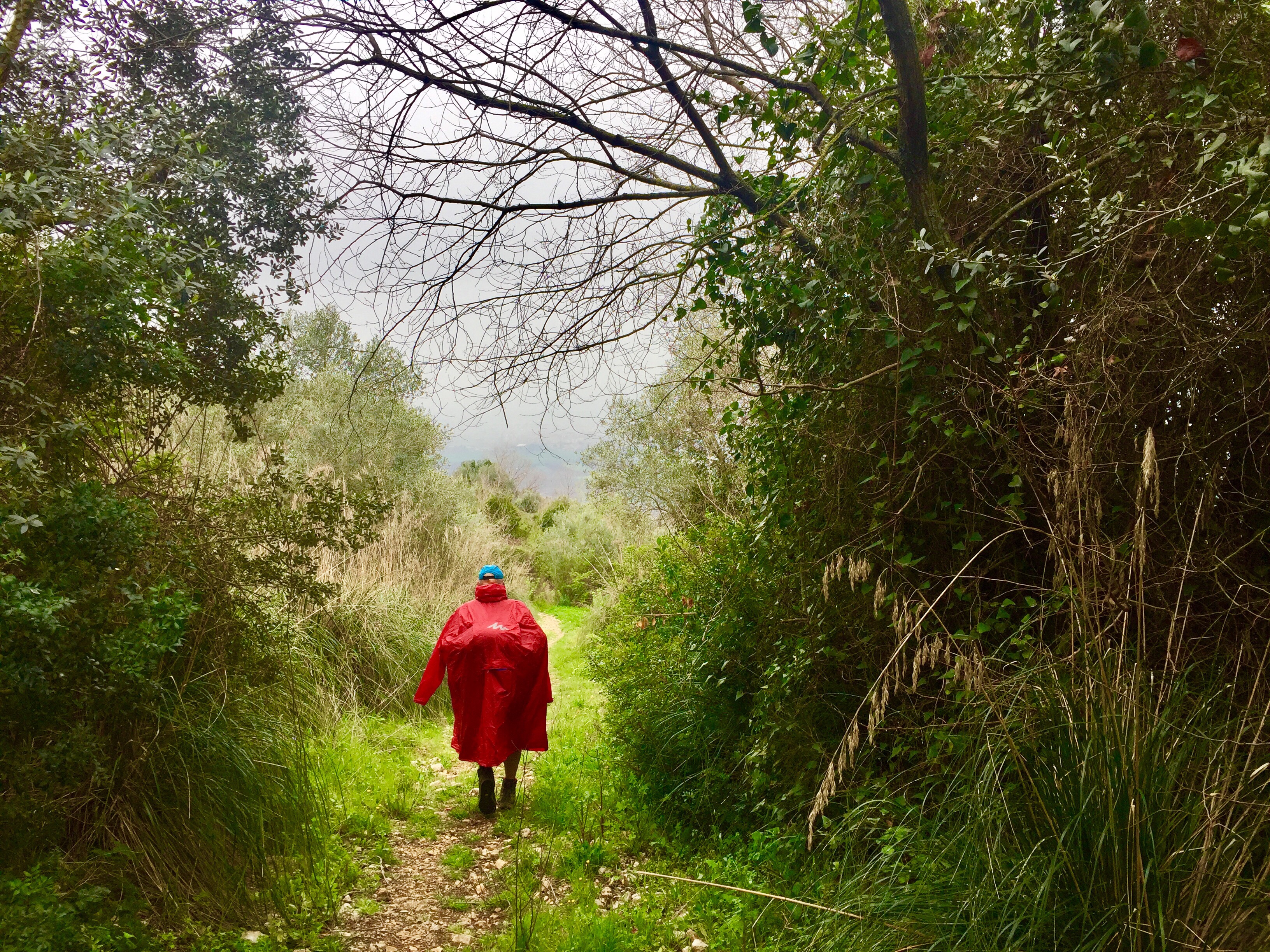 Ça y est il tombe 4 gouttes, c’est suffisant pour que nous soyons obligés de protéger le sac à dos.