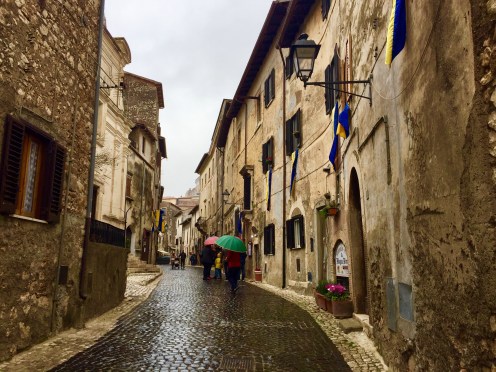 Très sympathiques les gens dans ce village. Nous cherchions à acheter des panini. Je m’arrête devant l’unique boutique où j’avais aperçu des clubs sandwichs, ce n’est pas ce que nous préférons mais si nous voulons continuer à marcher, il faut manger !!! Donc je m’arrête et sans que je n’ai rien demandé, les jeunes qui sont devant la porte me disent que plus loin dans la rue il y a ce qu’il faut.
