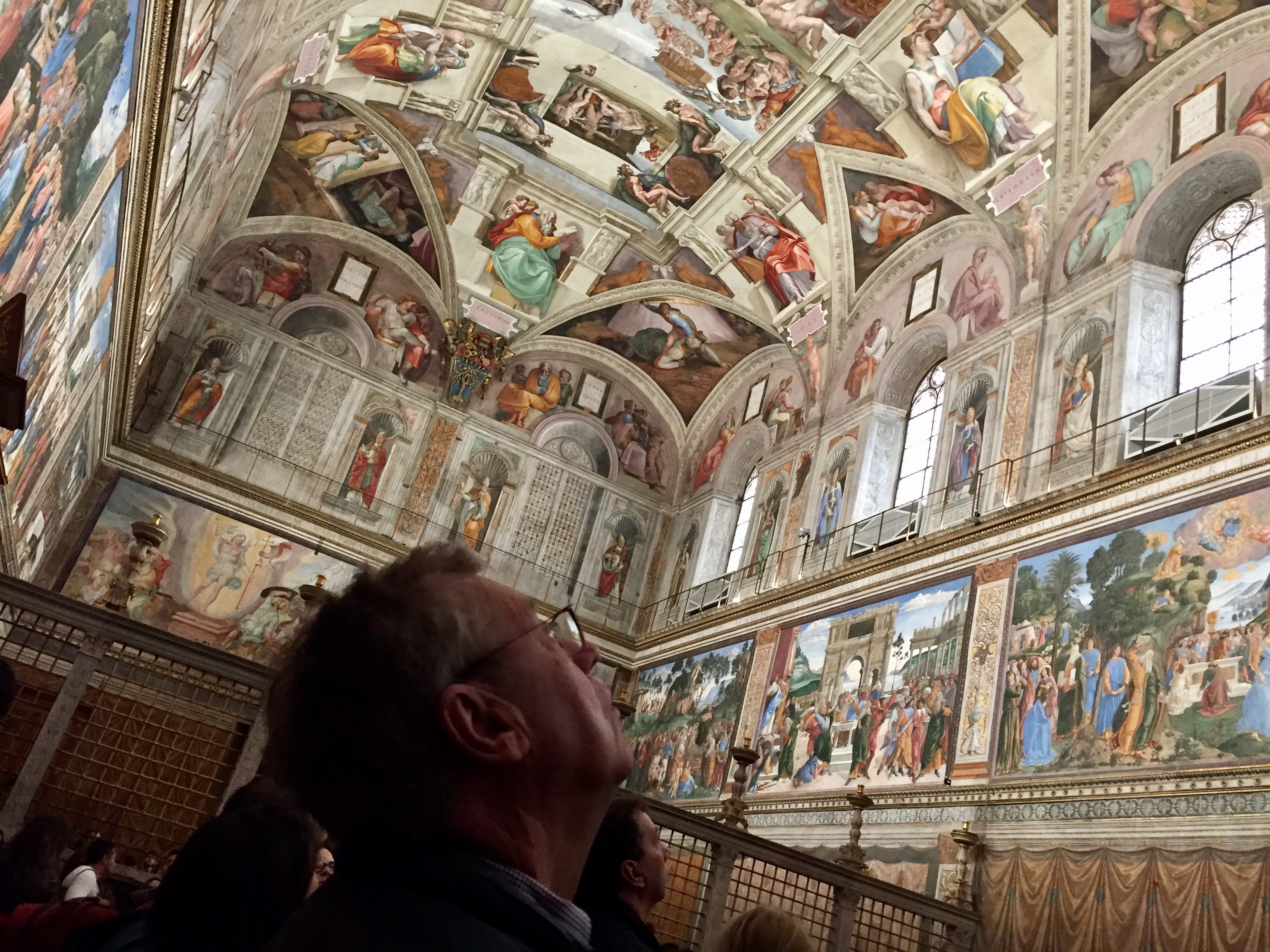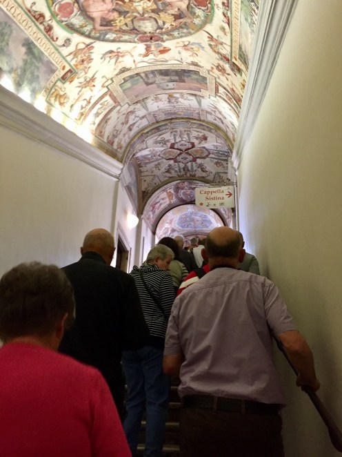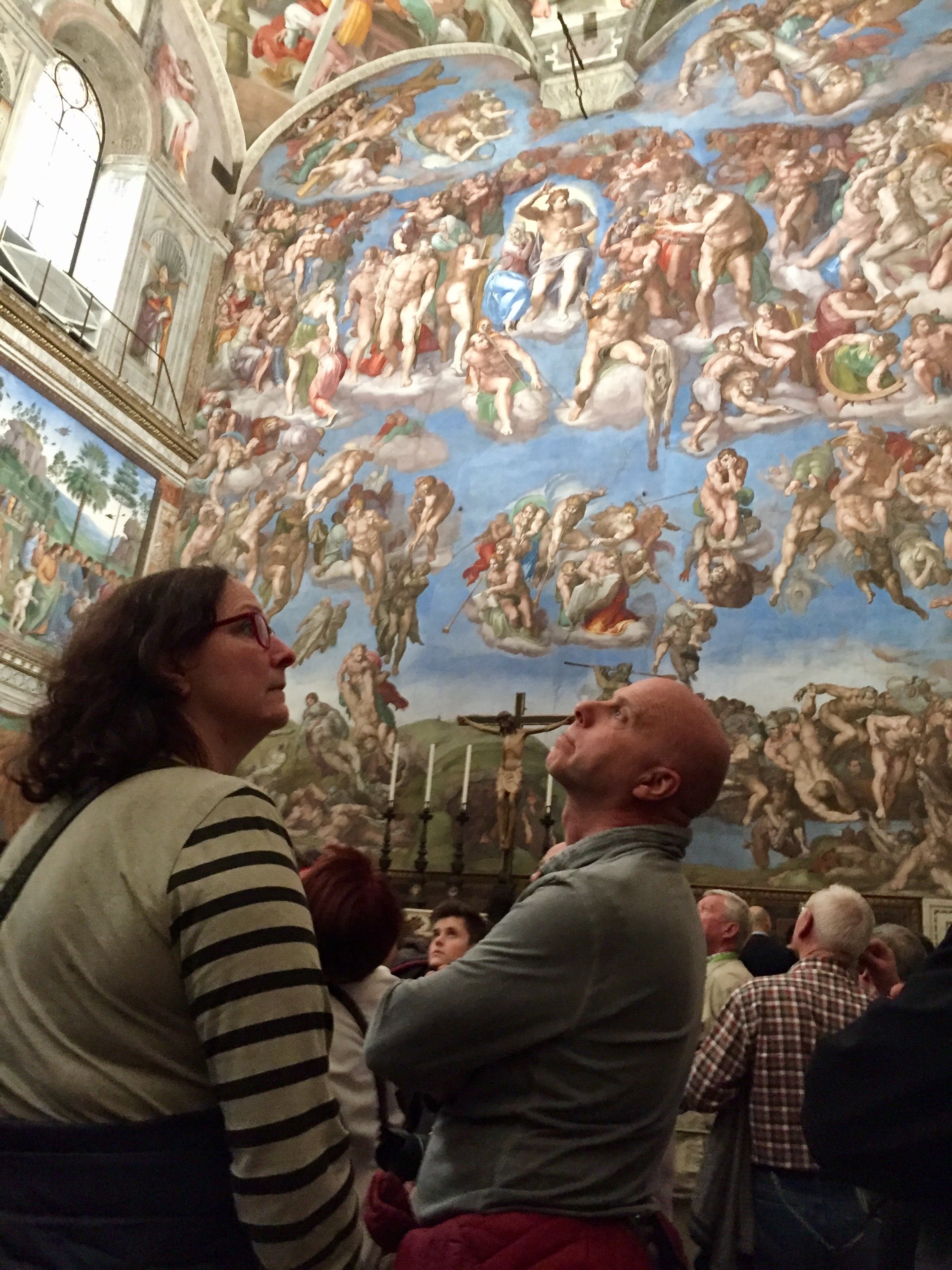 RomeLe long du Tibre en allant au Vatican pour visiter les jardins, le musée et La Chapelle Sixtine. Visite des jardins en bus. Réplique de la grotte de Lourdes dans les jardins du Vatican. St Michel. Le plafond de la galerie des cartes géographiques. Le Contat Venaissain. Détail du Contat Venaissin. Les fresques des chambres de Raphaël. Matisse. Foujita. Botero. En allant à La Chapelle Sixtine, une vue de la foule qui visite le musée !!! Combien de visiteurs par jour ??? Cela doit être énorme !!!C’est interdit 🚫 de photographier !!! Mais je n’ai pas pu m’en empêcher !!!Marteau et truelle pour ouverture et fermeture de la porte de la porte sainte de la Basilique. (1925)Detail de la rampe de l’escalier de Bramante, escalier à double hélice. La porte Sainte. La Pietà de Michel-Ange. Et c’est fini !!!