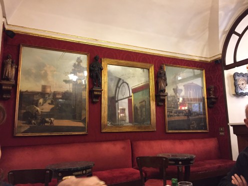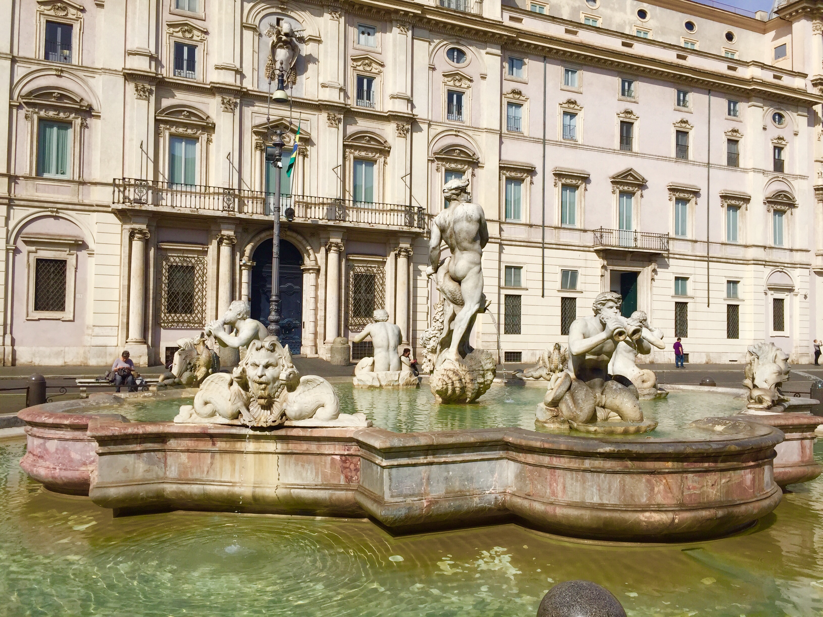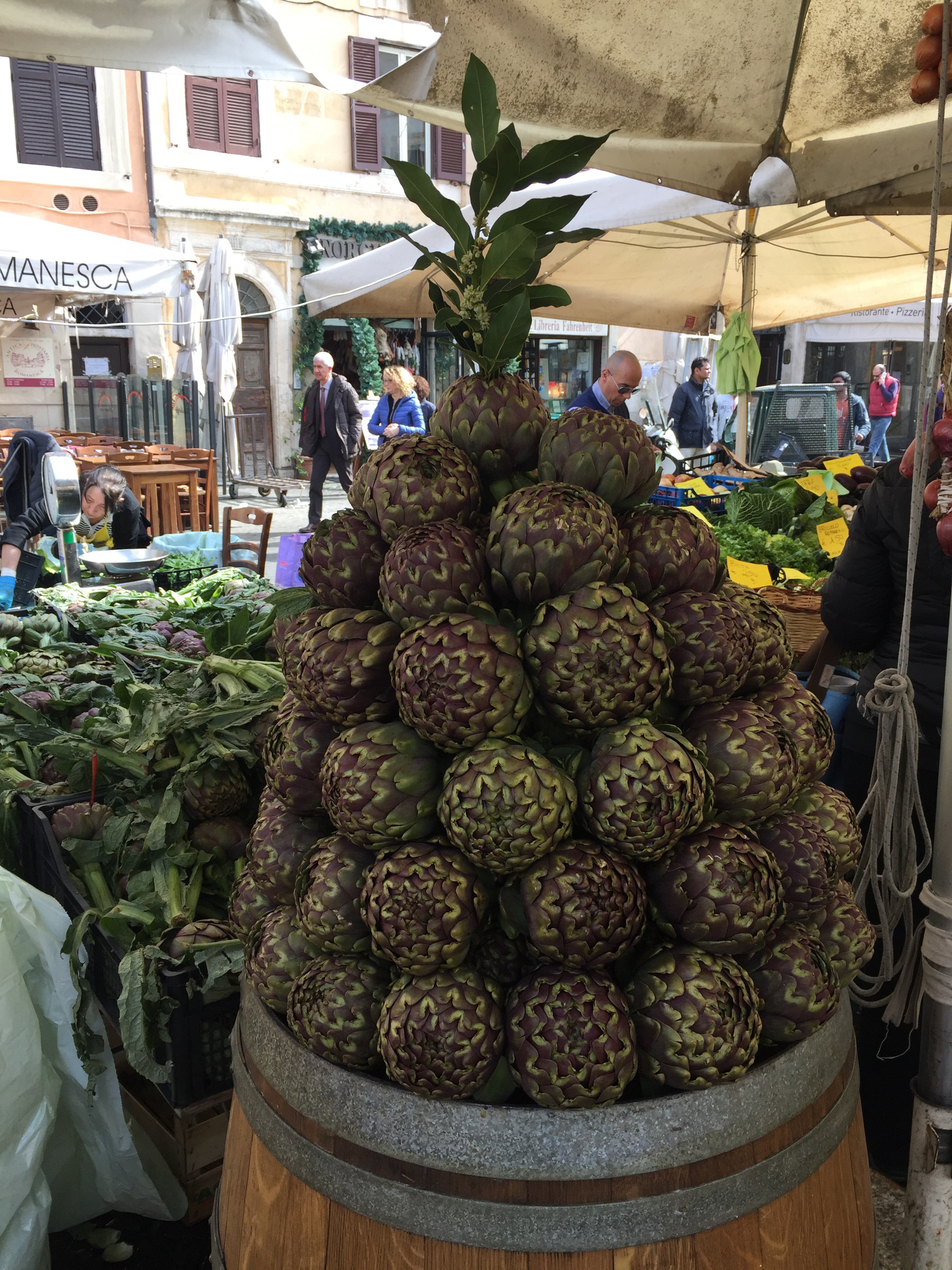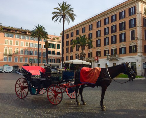 Rome – Marseille – Vestric 8 h du matin place d’Espagne, les chevaux sont prêts à accueillir les touristes. Vu dans l’église de San Lorenzo in Lucina. Place Navone, les plus belles fesses de Rome, dixit Betty !!!Les couleurs du marché du Campo dei Fiori. Le Palais Farnese, ambassade de France. Le Palais Spada siège du conseil d’état. La perspective de Borromini. http://laromedejulie.com/2012/02/perspective-borromini-palais-spada/Place de la Rotonde face au Panthéon. Petite pause gourmande à l’Antico Caffé Greco le plus ancien café de Rome, Via Condotti. Ma glycine est bien partie. Beau temps pour le jardin sauf pour les fruitiers en fleurs qui risquent de couler !!!