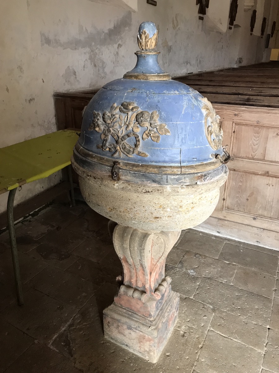 Les fonts baptismaux de l’église d’Emondeville.
