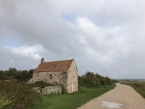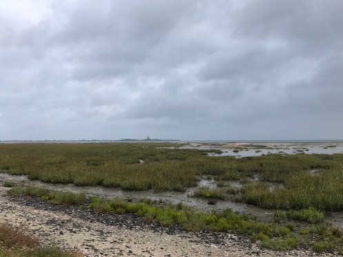 Quinéville – Quettehou – st-Vast – Quettehou – 36 kmDe la fenêtre de ma chambre. Encore un musée de la guerre. Aïe aïe aïe !!! C’est le blanc ou le noir qui va gagner ???Quinéville. C’est le noir qui a gagné !!! Nous allons avoir une alternance de pluie et de soleil tout le long de la journée. En un seul jour il a dû pleuvoir plus de fois que chez nous en un an. Pluie pas très forte qui ne nous a pas gênés. Visite chez un ostréiculteur. Des vaches de pré salé !!! Ouiiii … C’est nous !!! Petit retour dans les terres où nous trouvons des chemins boueux. Ça y est, marée haute. On se demande à quoi sert ce panneau, au bout il n’y avait pas de barrière. Fin de l’étape à 12h 30. Après un arrêt dans notre chambre d’hôtes pour poser notre sac à dos nous partons manger dans Quettehou et visiter St-Vaast. St-Vaast dans La Chapelle des pêcheurs. Le port de St-Vaast. Retour à Quettehou pour accueillir nos amis. Après un train parti de Caen avec 15 mn de retard pour un problème de « cathéter !!! », un arrêt en pleine campagne à cause d’une vache qui circulait sur la voie, premier bus raté, le deuxième coincé dans un accident, enfin voilà les Chevalier qui vont nous accompagner pendant 3 jours !!!