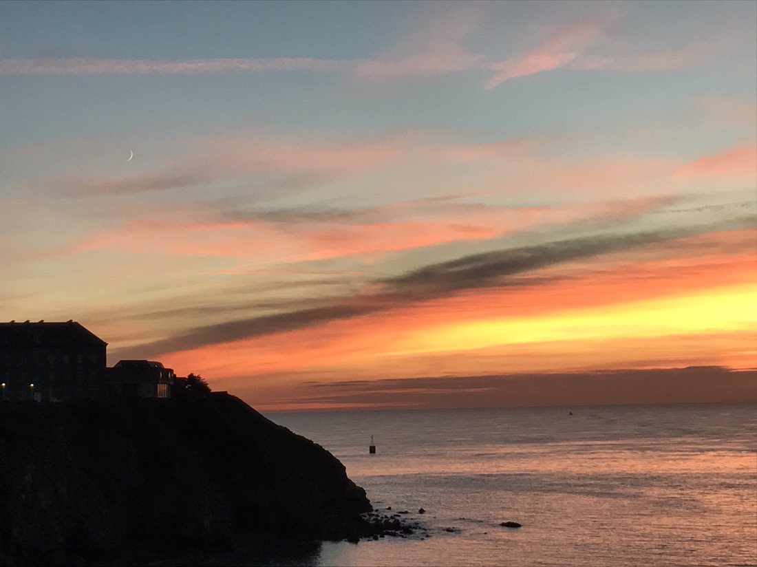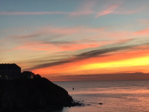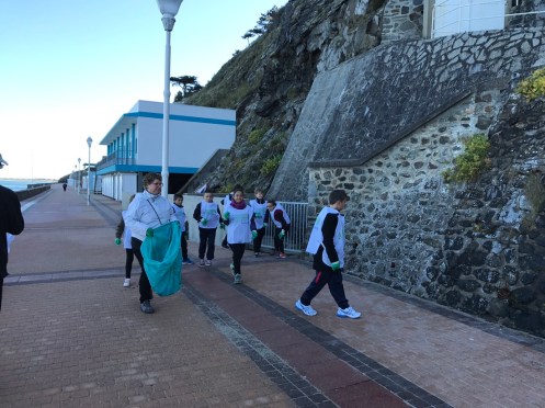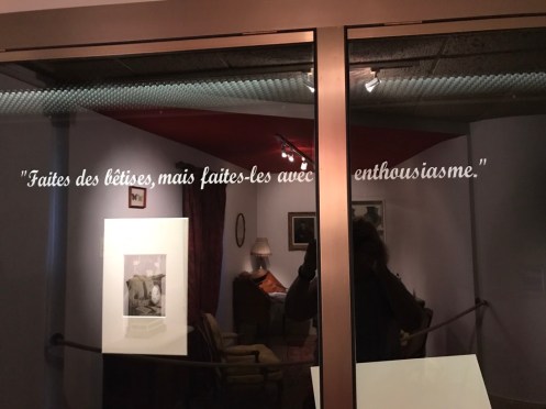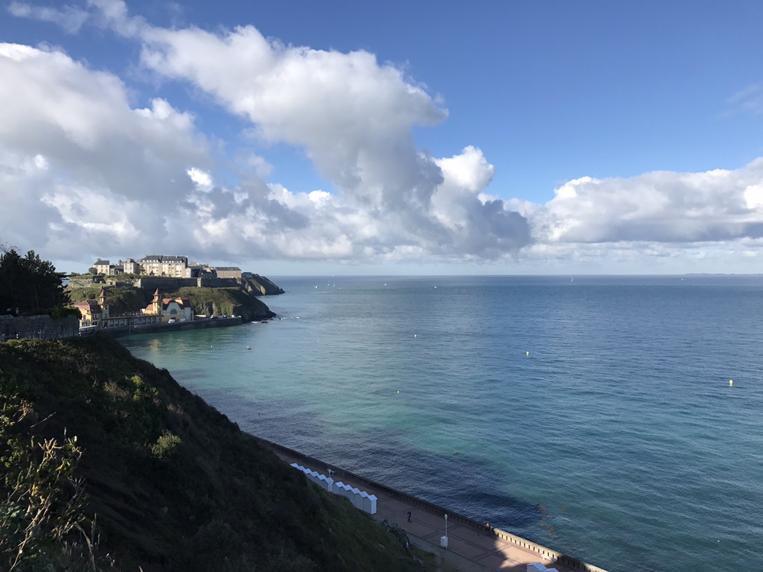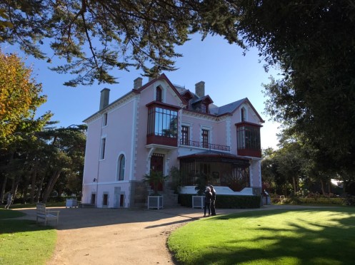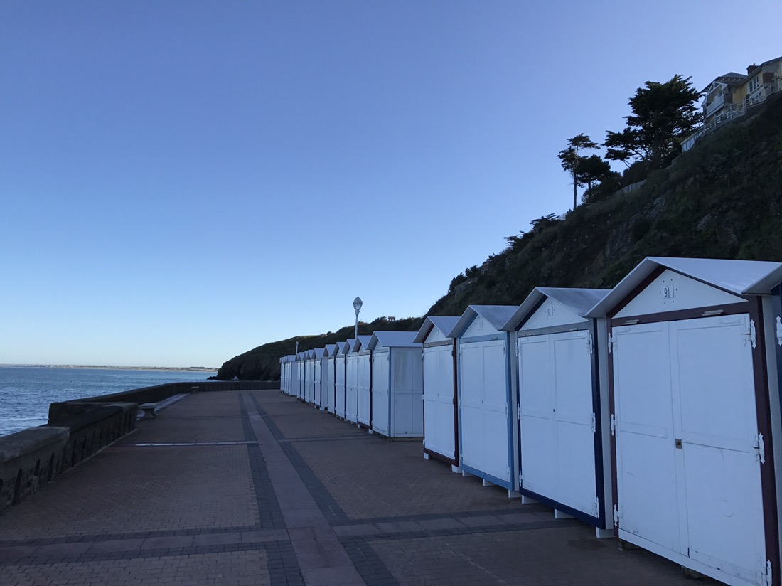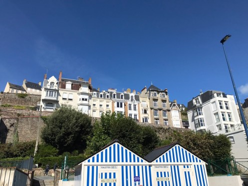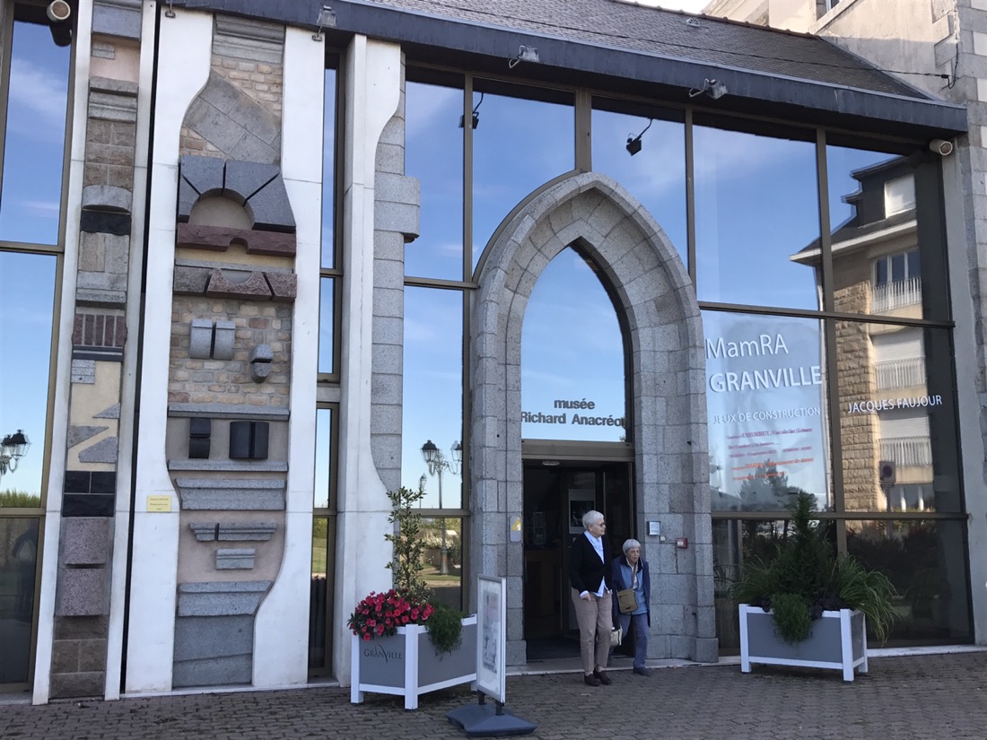 Granville – 15 kmNous croisons plusieurs groupes d’enfants qui nettoient la jetée. Il fait beauuuuuuu. Le musée Christian Dior, dans la villa les Rhumbs qui a vu grandir le couturier. C’était interdit de faire des photos mais je n’ai pas pu m’en empêcher. Le jardin de la villa.  Visite du musée d’Art Moderne Richard Anacréon. Guillaume Apollinaire. Marée basse. Quelques Cabines de Bains sont ouvertes, les gens discutent au soleil. Peut-être une chute de pierre !!!La mer monte, 20 minutes entre ces deux photos. Devant un bar. Et voilà c’est fini, demain nous prenons le train à 5h 55, il faut dormir.